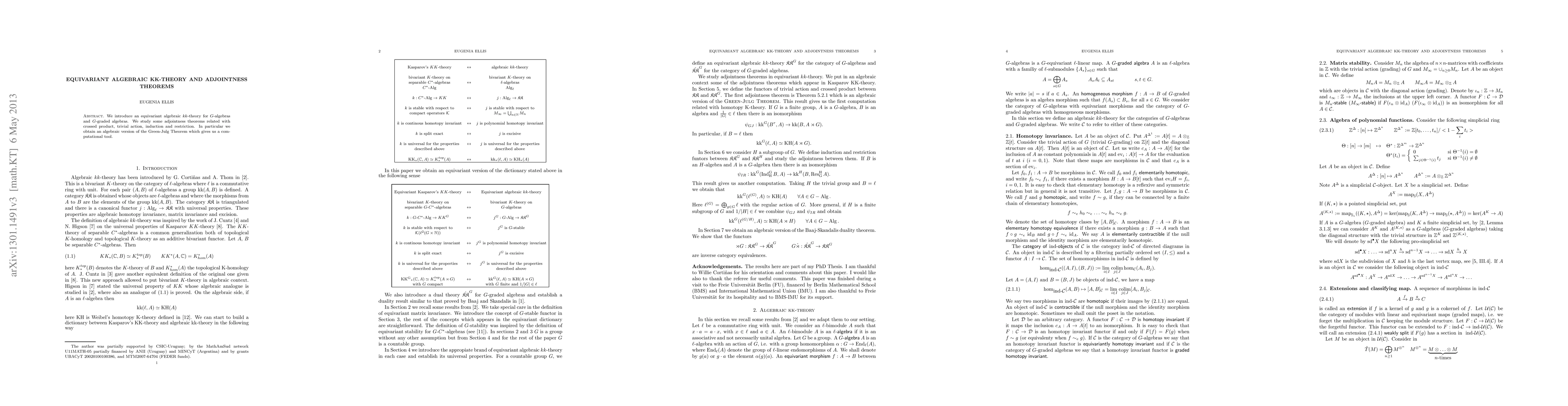 Summary: This paper introduces equivariant algebraic kk-theory for G-algebras and presents adjointness theorems involving crossed products and induction. It also provides an algebraic version of the Green-Julg Theorem as a computational tool.