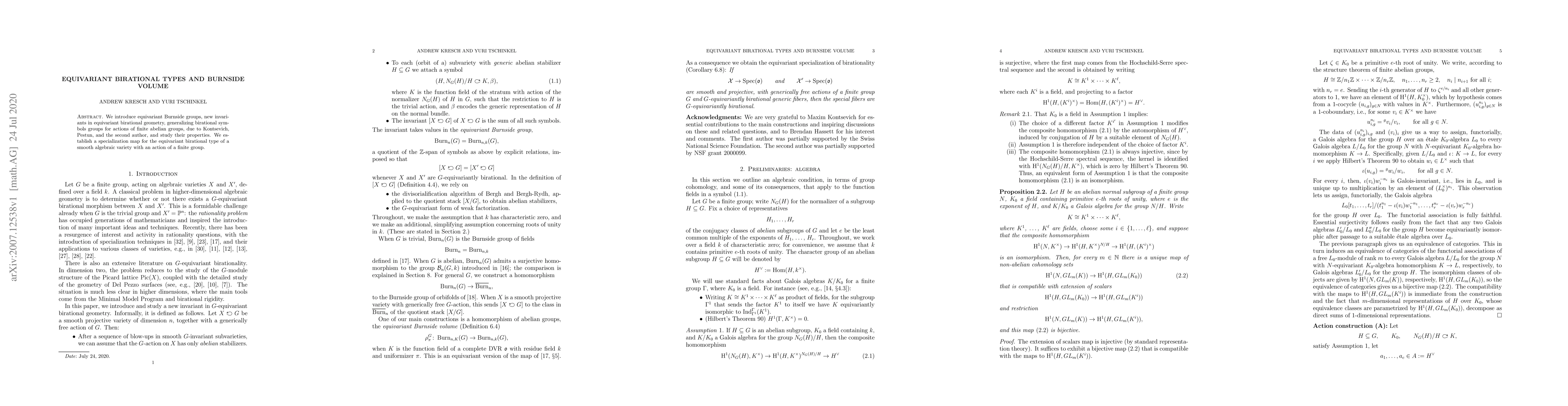 This paper introduces equivariant Burnside groups as new invariants in equivariant birational geometry, generalizing Kontsevich's birational symbols groups. It establishes a specialization map for the equivariant birational type of smooth algebraic varieties under finite group actions.