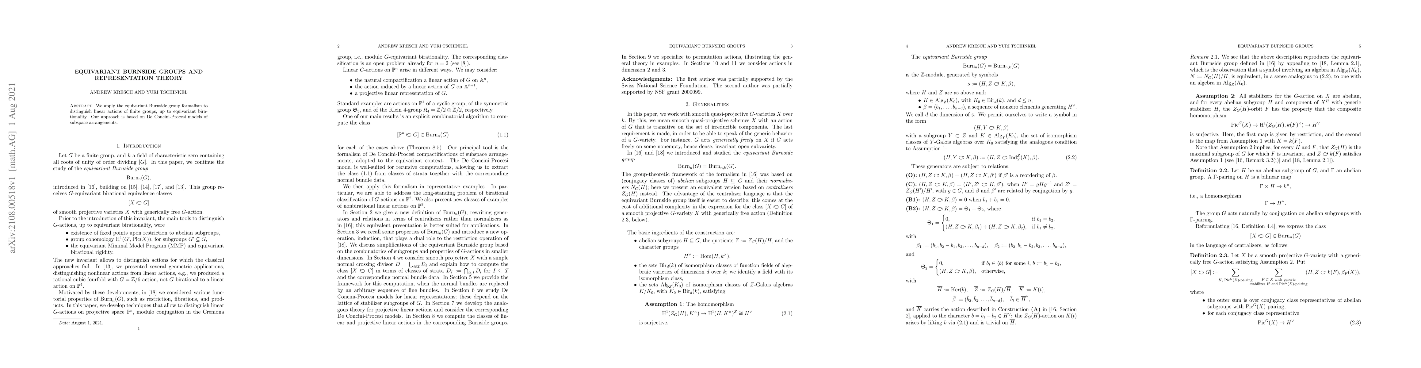 Summary: This paper utilizes the equivariant Burnside group to differentiate linear actions of finite groups based on equivariant birationality, leveraging De Concini-Procesi models for subspace arrangements. The study aims to advance representation theory through this novel approach.