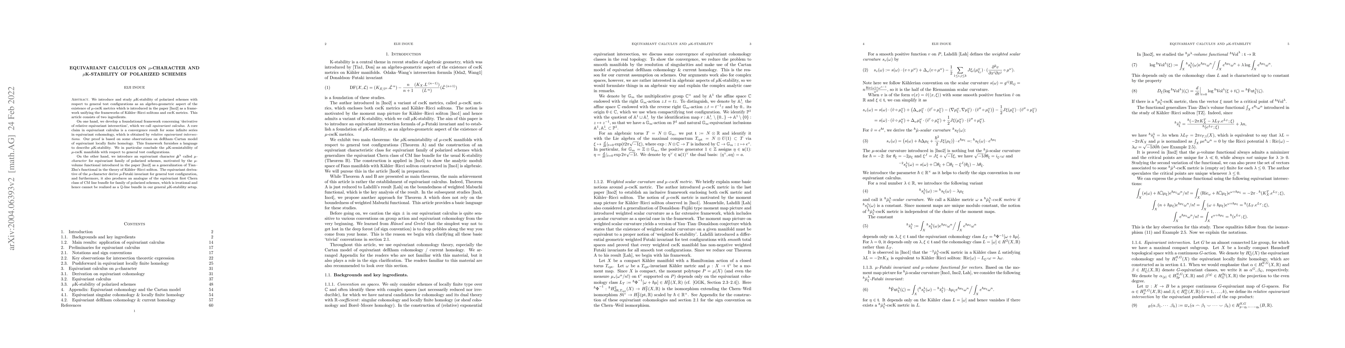 This paper develops a foundational framework for equivariant calculus to describe $\mu$K-stability of polarized schemes, introducing $\mu$-character and proving $\mu$K-semistability of $\mu$-cscK manifolds. It also establishes a convergence result for infinite series in equivariant cohomology, based on deRham-Cartan model observations.