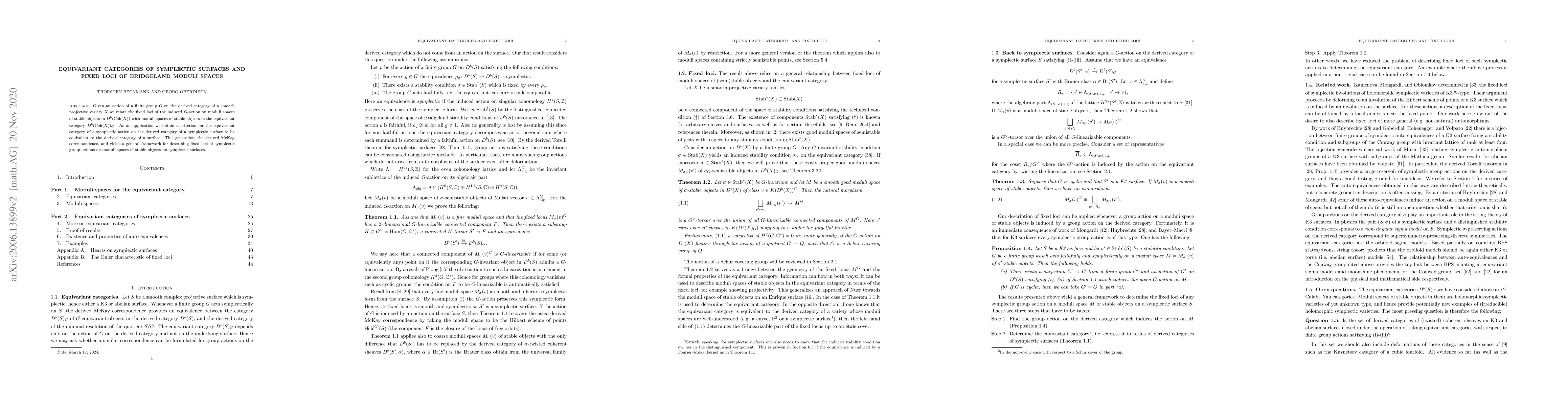 This paper establishes a connection between fixed loci of $G$-actions on Bridgeland moduli spaces and moduli spaces in the equivariant derived category, providing a criterion for the equivalence of equivariant categories in the context of symplectic surfaces. It generalizes the derived McKay correspondence and offers a framework for analyzing fixed loci of symplectic group actions.