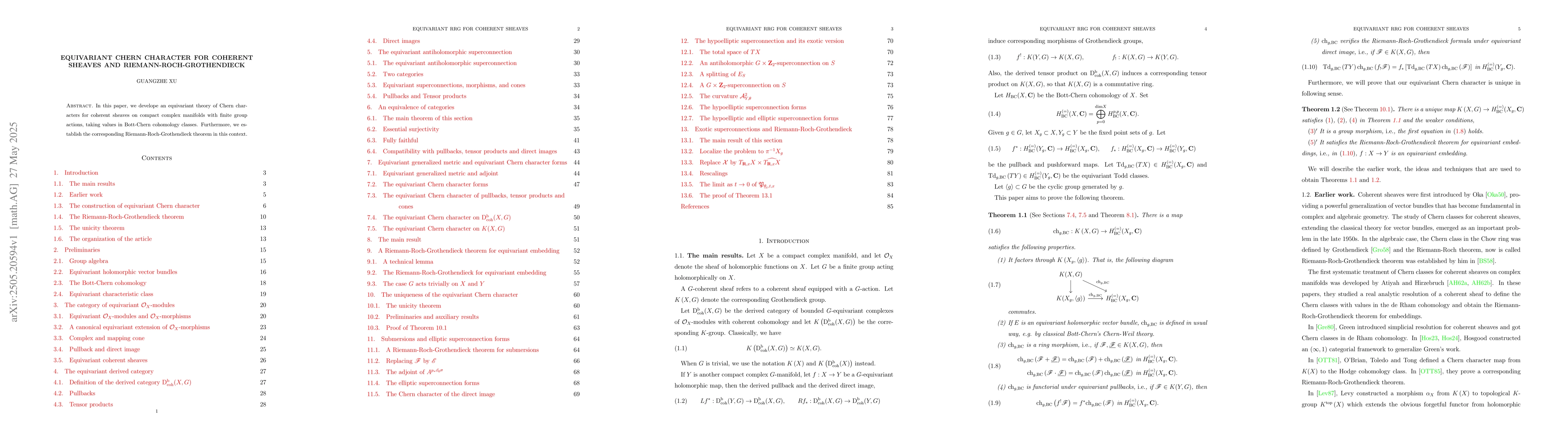 Researchers developed an equivariant theory of Chern characters for coherent sheaves on compact complex manifolds with finite group actions, leading to a Riemann-Roch-Grothendieck theorem in the context.