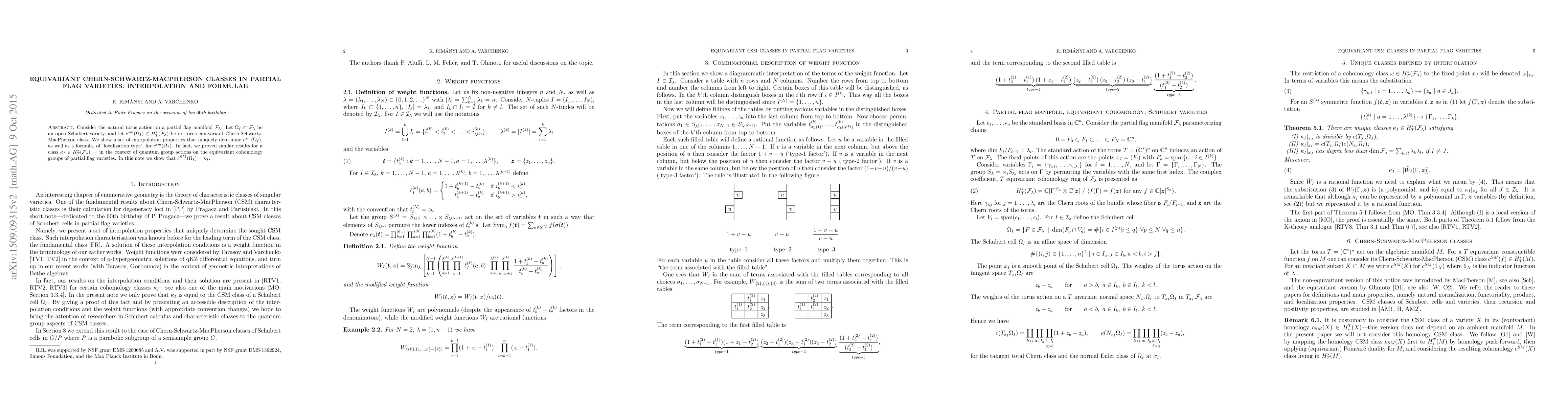 Consider the natural torus action on a partial flag manifold $Fl$. Let $\Omega_I\subset Fl$ be an open Schubert variety, and let $c^{sm}(\Omega_I)\in H_T^*(Fl)$ be its torus equivariant Chern-Schwartz-MacPherson class. We show a set of interpolation properties that uniquely determine $c^{sm}(\Omega_I)$, as well as a formula, of `localization type', for $c^{sm}(\Omega_I)$. In fact, we proved similar results for a class $\kappa_I\in H_T^*(Fl)$ --- in the context of quantum group actions on the equivariant cohomology groups of partial flag varieties. In this note we show that $c^{SM}(\Omega_I)=\kappa_I$.