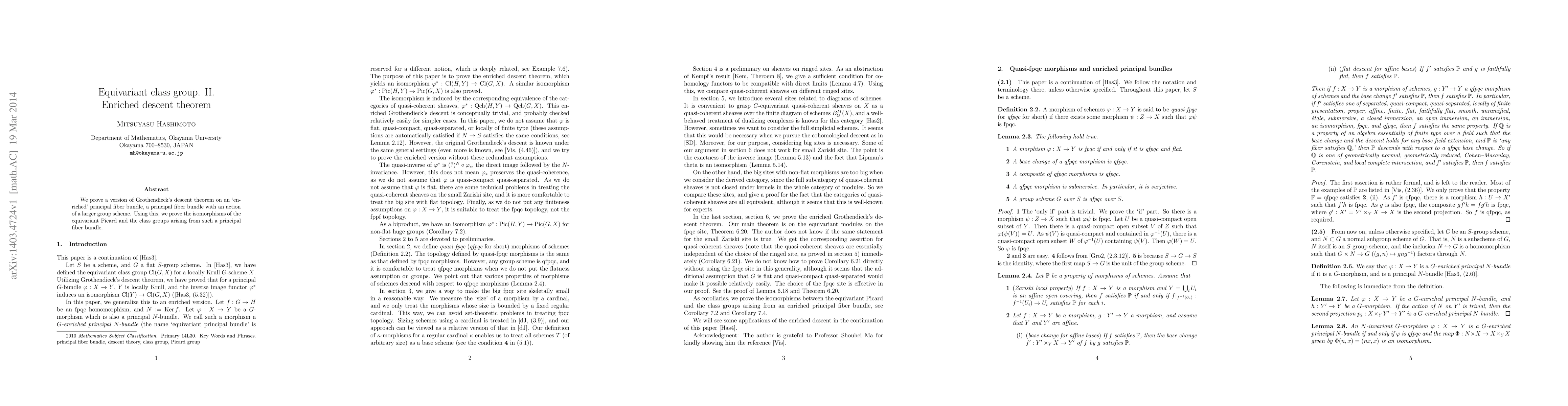 This paper proves an enriched version of Grothendieck's descent theorem for principal fiber bundles with actions from larger group schemes, and demonstrates the resulting isomorphisms between equivariant Picard and class groups derived from such bundles.