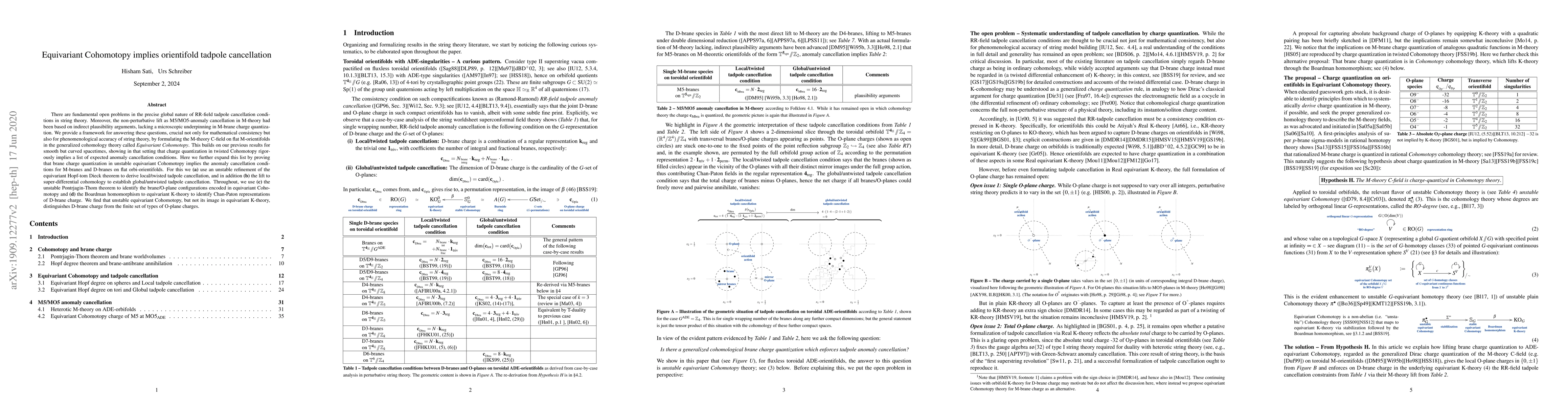 There are fundamental open problems in the precise global nature of RR-field tadpole cancellation conditions in string theory. Moreover, the non-perturbative lift as M5/MO5-anomaly cancellation in M-theory had been based on indirect plausibility arguments,lacking a microscopic underpinning in M-brane charge quantization. We provide a framework for answering these questions, crucial not only for mathematical consistency but also for phenomenological accuracy of string theory, by formulating the M-theory C-field on flat M-orientifolds in the generalized cohomology theory called Equivariant Cohomotopy. This builds on our previous results for smooth but curved spacetimes, showing in that setting that charge quantization in twisted Cohomotopy rigorously implies a list of expected anomaly cancellation conditions. Here we further expand this list by proving that brane charge quantization in unstable equivariant Cohomotopy implies the anomaly cancellation conditions for M-branes and D-branes on flat orbi-orientifolds. For this we (a) use an unstable refinement of the equivariant Hopf-tom Dieck theorem to derive local/twisted tadpole cancellation, and (b) the lift to super-differential cohomology to establish global/untwisted tadpole cancellation. Throughout, we use (c) the unstable Pontrjagin-Thom theorem to identify the brane/O-plane configurations encoded in equivariant Cohomotopy and (d) the Boardman homomorphism to equivariant K-theory to identify Chan-Paton representations of D-brane charge. We find that unstable equivariant Cohomotopy, but not its image in K-theory, distinguishes D-brane charge from the finite set of types of O-plane charges.