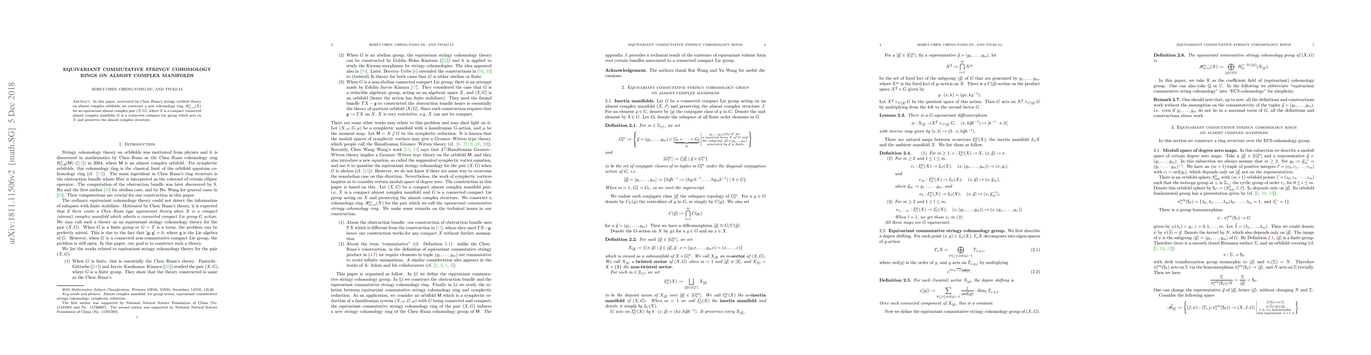 In this paper, motivated by Chen--Ruan's stringy orbifold theory on almost complex orbifolds, we construct a new cohomology ring $\mathscr H^\ast_{G,cs}(X)$ for an equivariant almost complex pair $(X,G)$, where $X$ is a compact connected almost complex manifold, $G$ is a connected compact Lie group which acts on $X$ and preserves the almost complex structure.