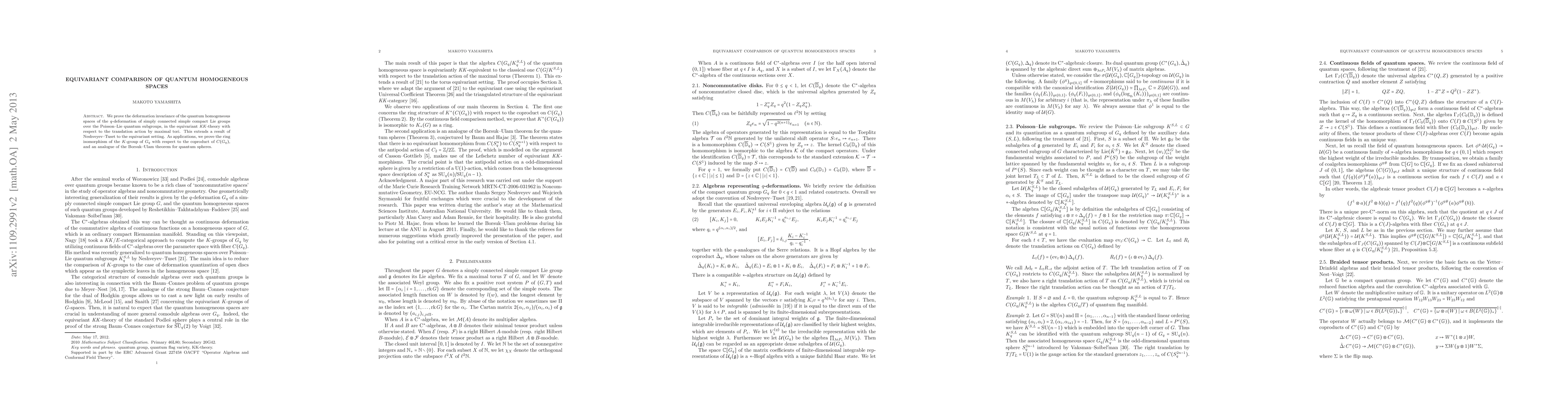 This paper proves the deformation invariance of quantum homogeneous spaces of q-deformed compact Lie groups under Poisson-Lie quantum subgroups, extending previous results to the equivariant KK-theory. It also establishes a ring isomorphism for the K-group of Gq and an analogue of the Borsuk-Ulam theorem for quantum spheres.