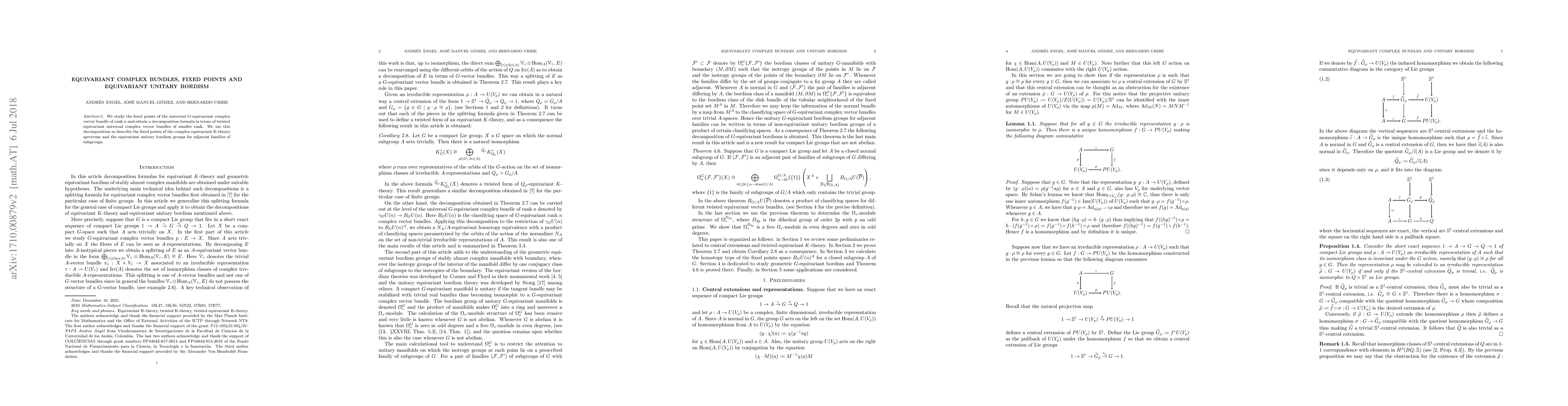 This paper investigates the fixed points of a universal G-equivariant n-dimensional complex vector bundle, deriving a decomposition formula. This formula is then applied to describe fixed points in complex equivariant K-theory and equivariant unitary bordism groups for subgroup families.