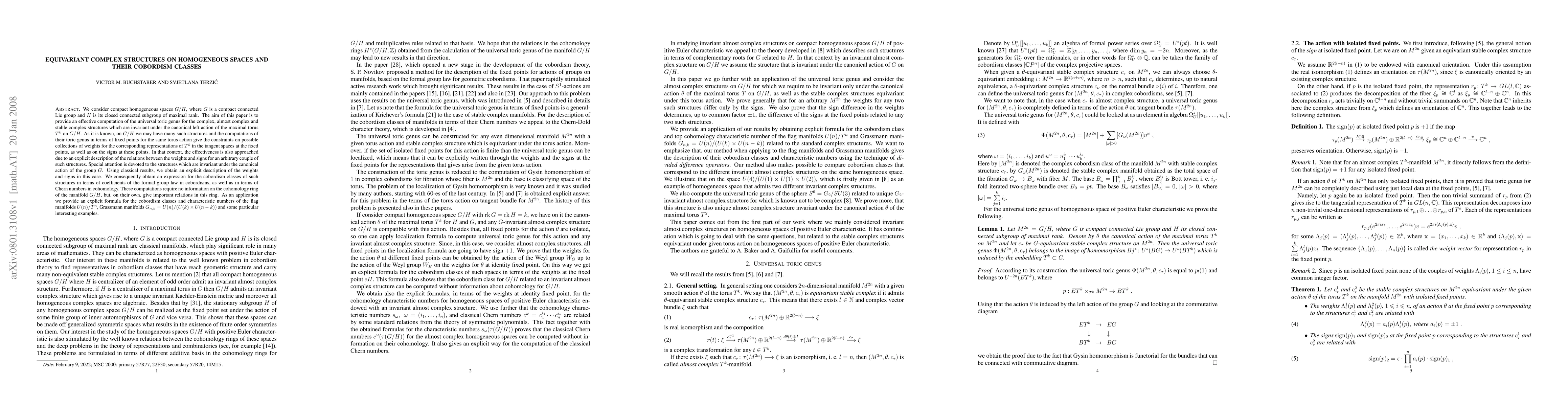 This paper computes universal toric genus for invariant complex structures on compact homogeneous spaces under canonical torus action, providing expressions for cobordism classes in terms of formal group law or Chern numbers.