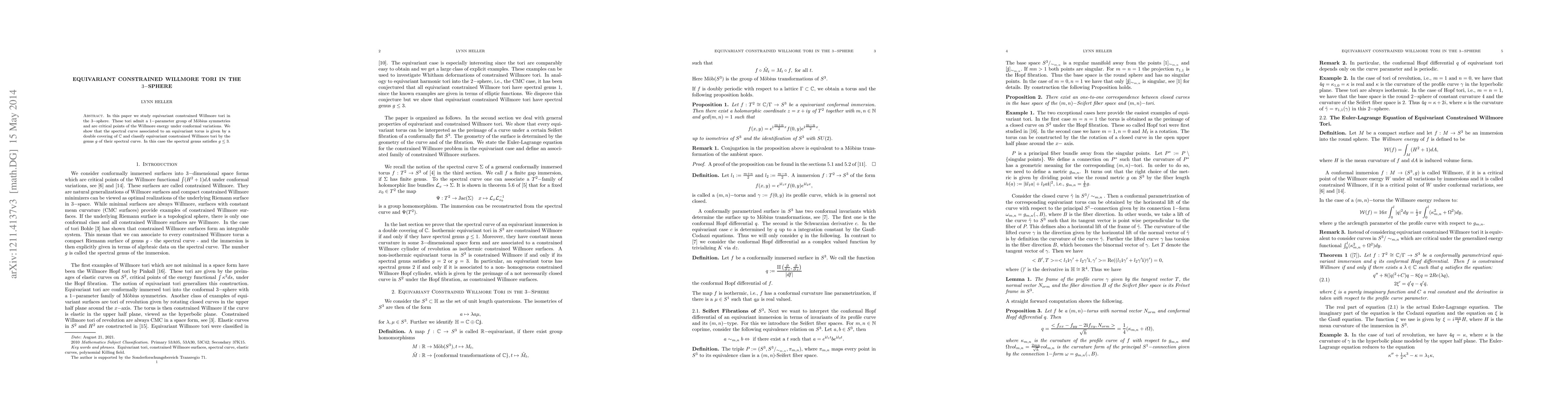 This paper investigates equivariant constrained Willmore tori in the 3-sphere, demonstrating that they are critical points of the Willmore energy and possess Möbius symmetries. The classification of these tori is based on the genus of their spectral curve, which satisfies $g \leq 3$.