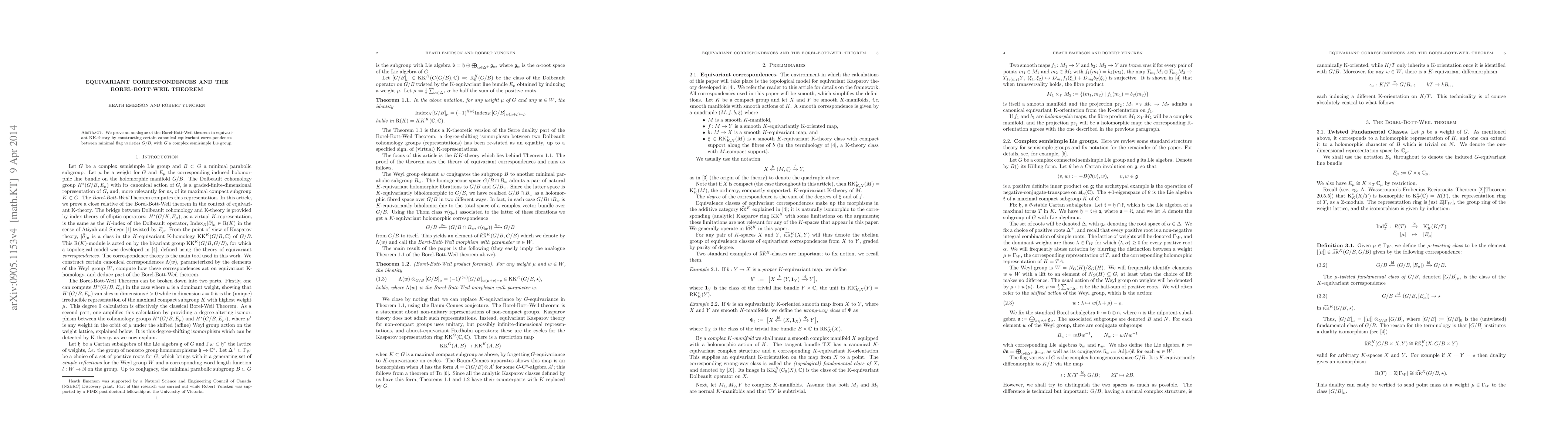 The paper proves an analogue of the Borel-Bott-Weil theorem within equivariant KK-theory by establishing canonical equivariant correspondences between minimal flag varieties of complex semisimple Lie groups. These correspondences facilitate the connection in equivariant KK-theory.