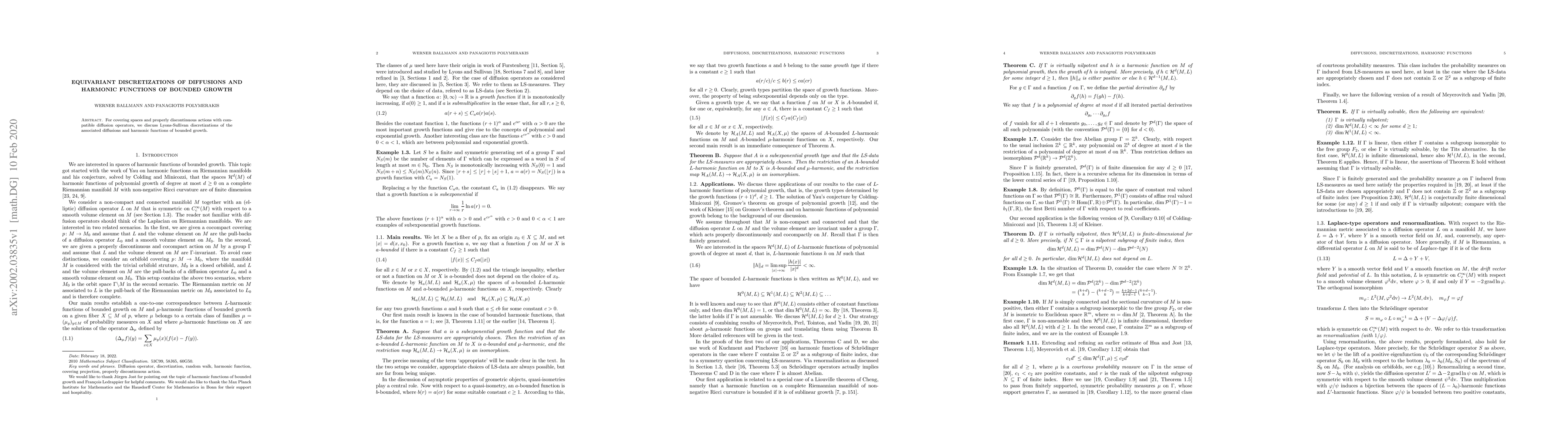 For covering spaces and properly discontinuous actions with compatible diffusion operators, we discuss Lyons-Sullivan discretizations of the associated diffusions and harmonic functions of bounded growth.