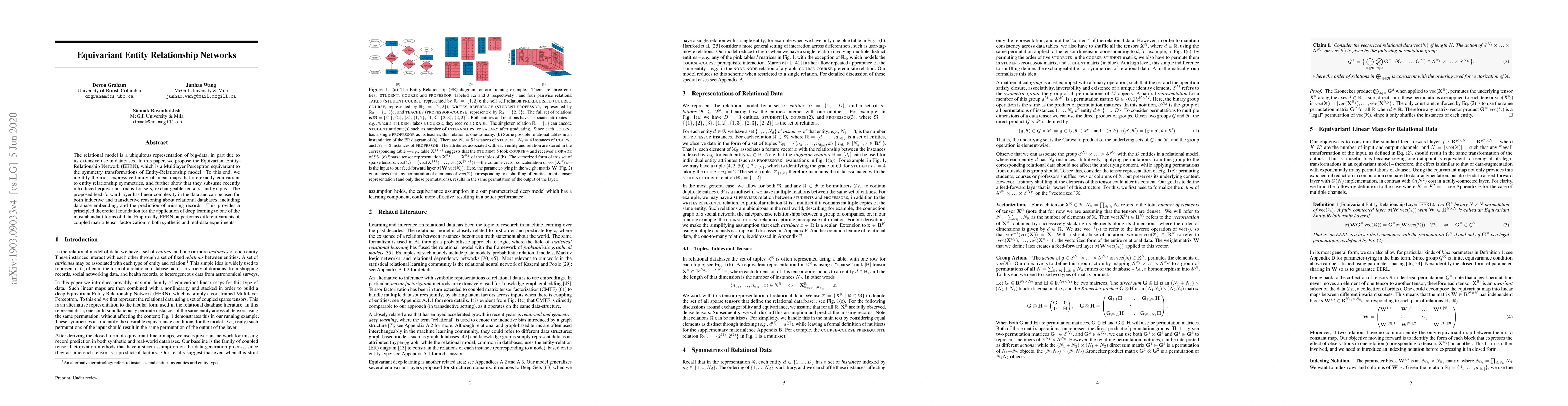 The paper proposes the Equivariant Entity-Relationship Network (EERN), a deep learning model that is equivariant to the symmetries of the Entity-Relationship model, offering a principled approach for relational database analysis. Empirically, EERN outperforms existing coupled matrix tensor factorization methods in both synthetic and real-world datasets.