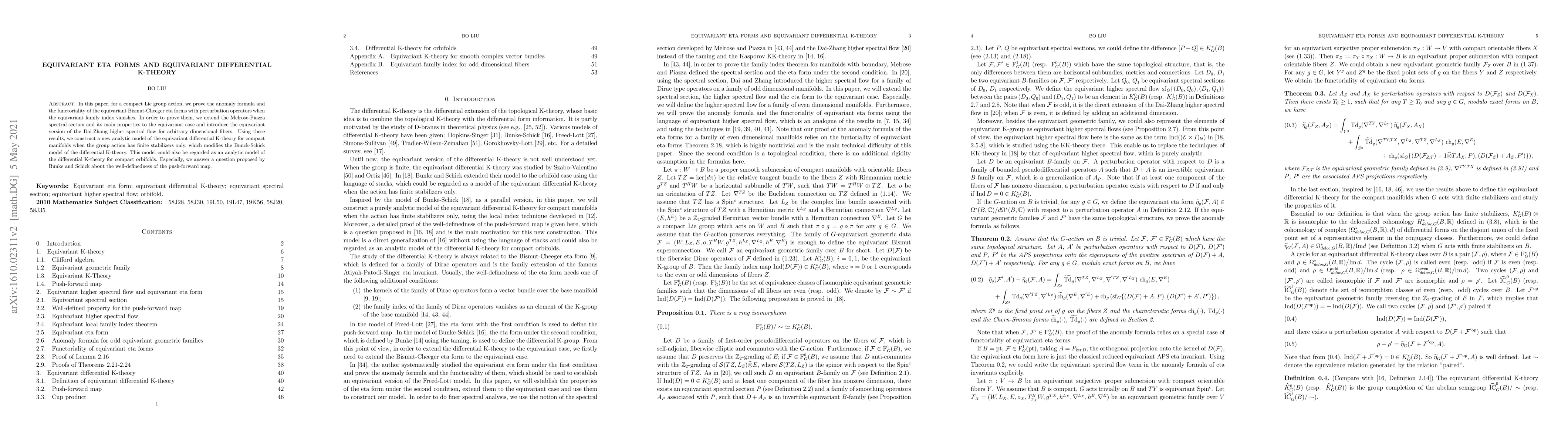 This paper establishes the anomaly formula and functoriality of equivariant Bismut-Cheeger eta forms under specific conditions, extending the Melrose-Piazza spectral section to the equivariant context. It introduces an equivariant version of the Dai-Zhang higher spectral flow and constructs a new analytic model of equivariant differential K-theory for compact manifolds with finite stabilizers, addressing the well-definedness of the push-forward map.