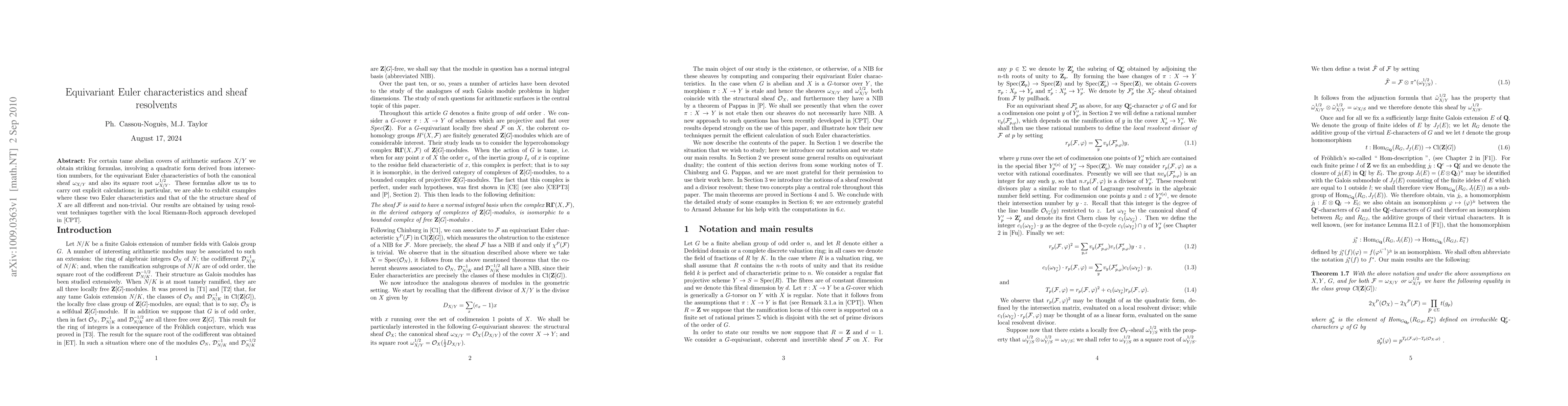 Researchers discovered striking formulas involving quadratic forms for equivariant Euler characteristics of certain abelian covers of arithmetic surfaces, enabling explicit calculations and showcasing unique relationships between the canonical sheaf, its square root, and the structure sheaf.