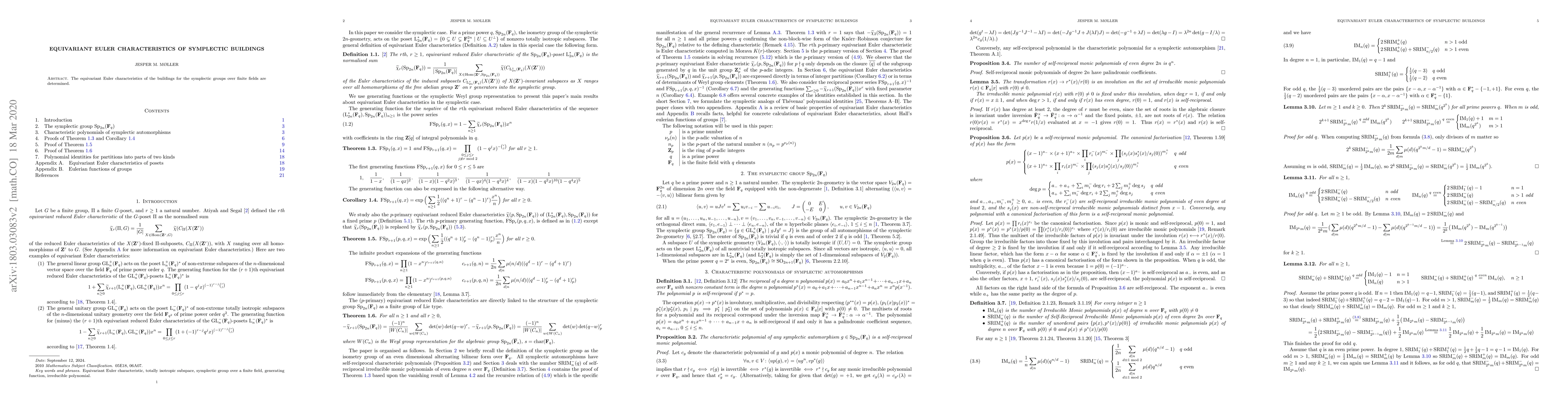 The paper introduces methods for calculating equivariant Euler characteristics of symplectic buildings under group actions, extending existing theories in algebraic combinatorics and representation theory.