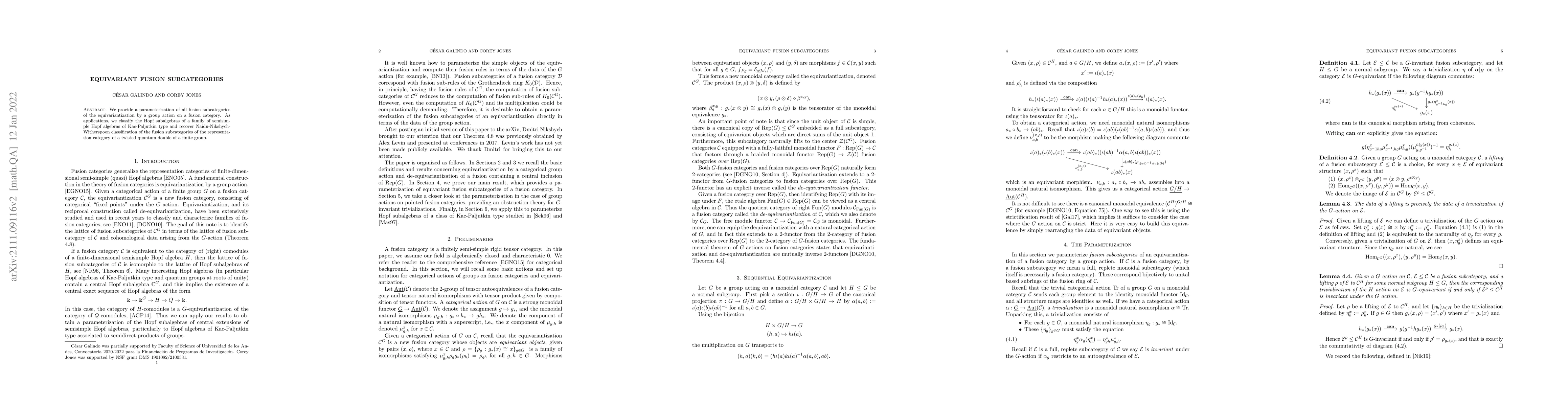 We provide a parameterization of all fusion subcategories of the equivariantization by a group action on a fusion category. As applications, we classify the Hopf subalgebras of a family of semisimple Hopf algebras of Kac-Paljutkin type and recover Naidu-Nikshych-Witherspoon classification of the fusion subcategories of the representation category of a twisted quantum double of a finite group.