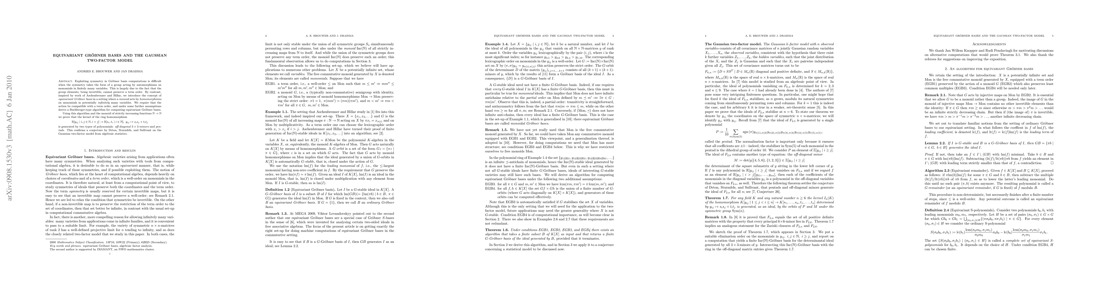 Exploiting symmetry in Groebner basis computations is difficult when the symmetry takes the form of a group acting by automorphisms on monomials in finitely many variables. This is largely due to the fact that the group elements, being invertible, cannot preserve a term order. By contrast, inspired by work of Aschenbrenner and Hillar, we introduce the concept of equivariant Groebner basis in a setting where a_monoid_ acts by_homomorphisms_ on monomials in potentially infinitely many variables. We require that the action be compatible with a term order, and under some further assumptions derive a Buchberger-type algorithm for computing equivariant Groebner bases. Using this algorithm and the monoid of strictly increasing functions N -> N we prove that the kernel of the ring homomorphism R[y_{ij} | i,j in N, i > j] -> R[s_i,t_i | i in N], y_{ij} -> s_i s_j + t_i t_j is generated by two types of polynomials: off-diagonal 3x3-minors and pentads. This confirms a conjecture by Drton, Sturmfels, and Sullivant on the Gaussian two-factor model from algebraic statistics.
