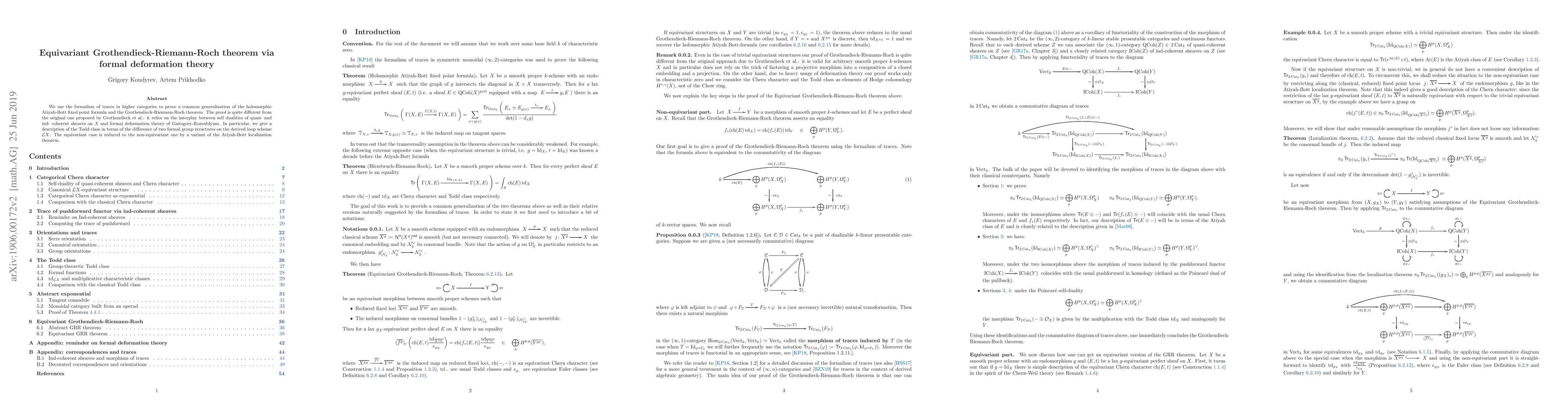 This paper generalizes the Grothendieck-Riemann-Roch theorem using traces in higher categories, relying on quasi- and ind-coherent sheaves and formal deformation theory. It connects the Todd class via differences of formal group structures and employs a variant of the Atiyah-Bott localization theorem for the equivariant case.