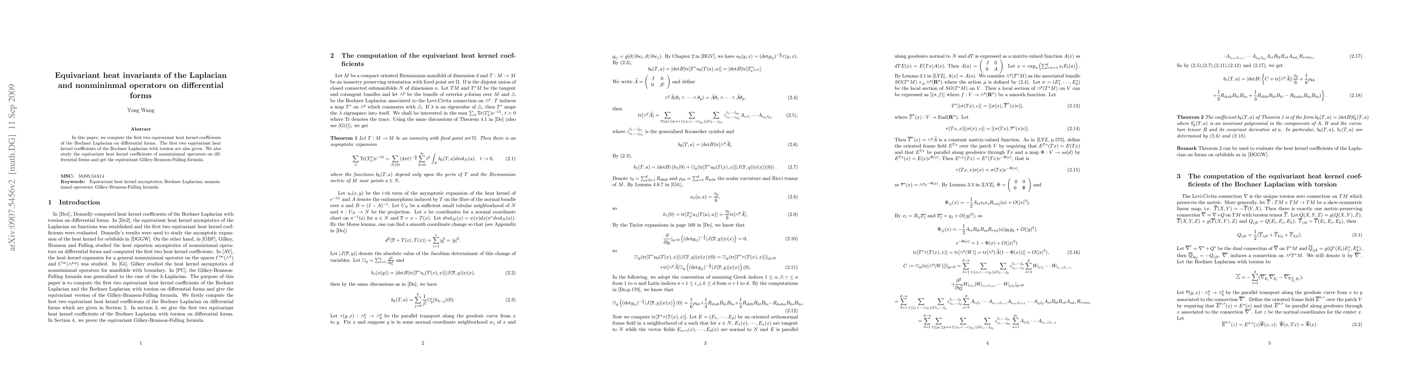 This paper computes the first two equivariant heat kernel coefficients of the Bochner Laplacian on differential forms and those with torsion, and derives the equivariant Gilkey-Branson-Fulling formula for nonminimal operators.