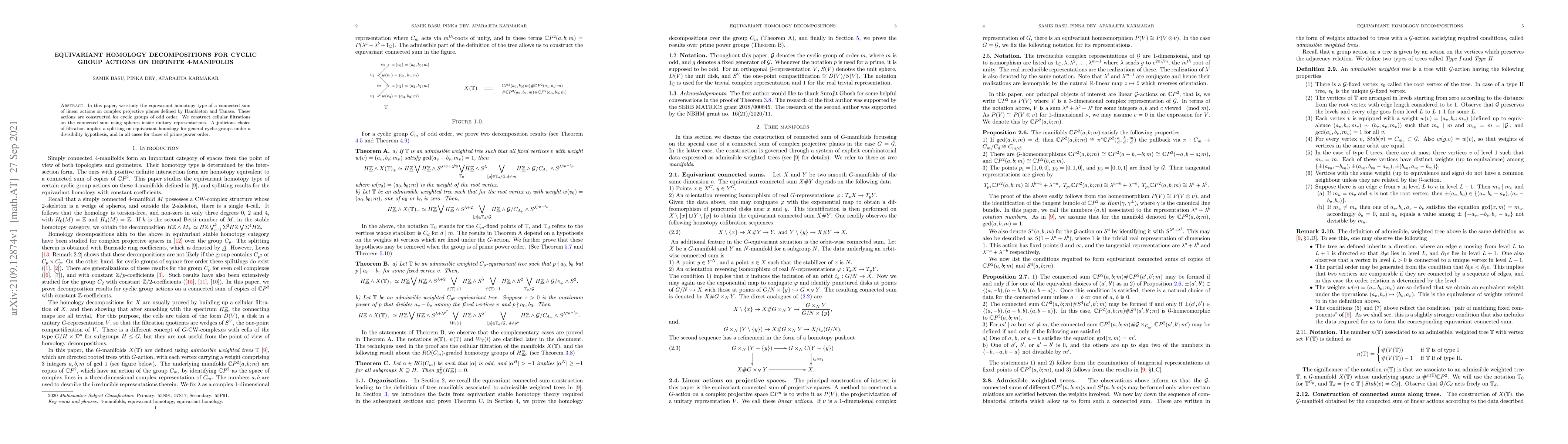 This paper explores the equivariant homotopy type of a connected sum of linear cyclic group actions on complex projective planes, leading to cellular filtrations and a decomposition of equivariant homology under specific divisibility conditions, particularly for cyclic groups of prime power order.