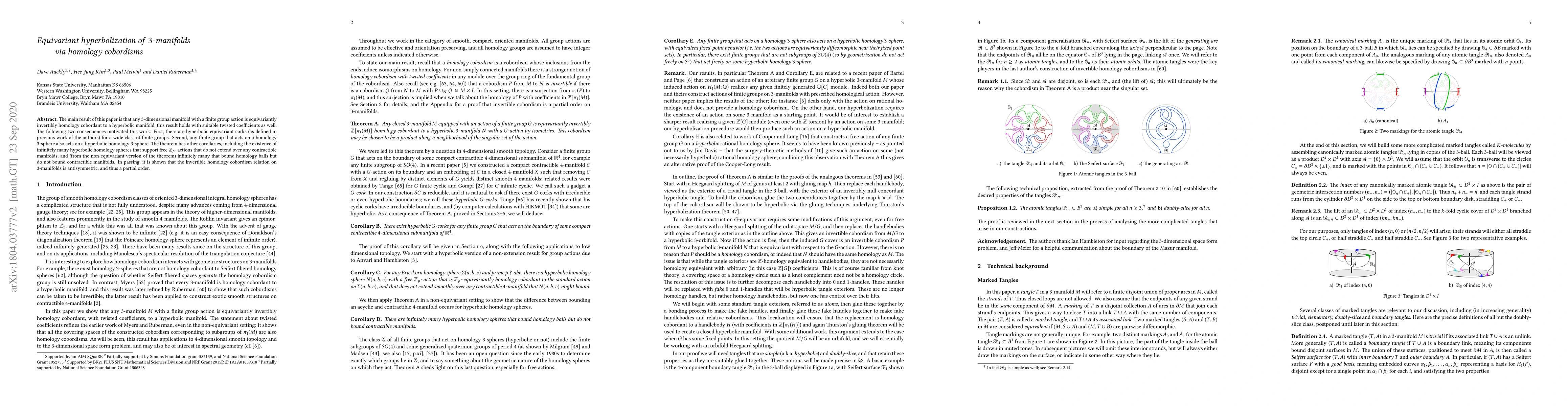 The main result of this paper is that any $3$-dimensional manifold with a finite group action is equivariantly, invertibly homology cobordant to a hyperbolic manifold; this result holds with suitable twisted coefficients as well. The following two consequences motivated this work. First, there are hyperbolic equivariant corks (as defined in previous work of the authors) for a wide class of finite groups. Second, any finite group that acts on a homology $3$-sphere also acts on a hyperbolic homology $3$-sphere. The theorem has other applications, including establishing the existence of an infinite number of hyperbolic homology spheres with a free $Z_p$ action that does not extend to any contractible manifold. A non-equivariant version yields an infinite number of hyperbolic integer homology spheres that bound integer homology balls but do not bound contractible manifolds. In passing, it is shown that the invertible homology cobordism relation on $3$-manifolds is antisymmetric.