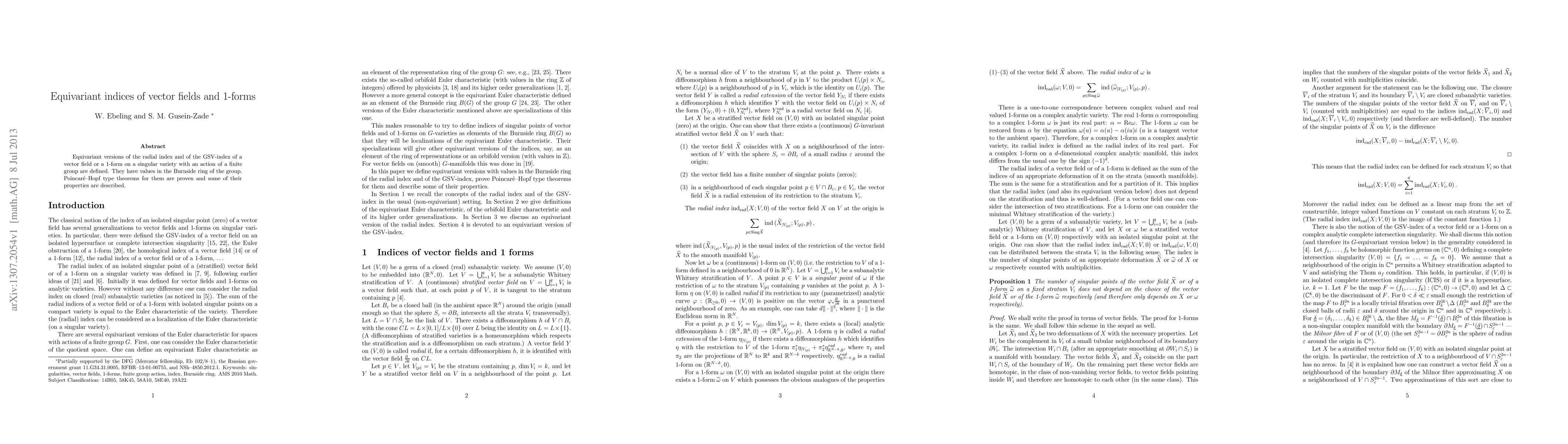 Researchers defined equivariant indices for vector fields and 1-forms on singular varieties, linking them to the Burnside ring of a finite group, and proved Poincaré-Hopf type theorems.