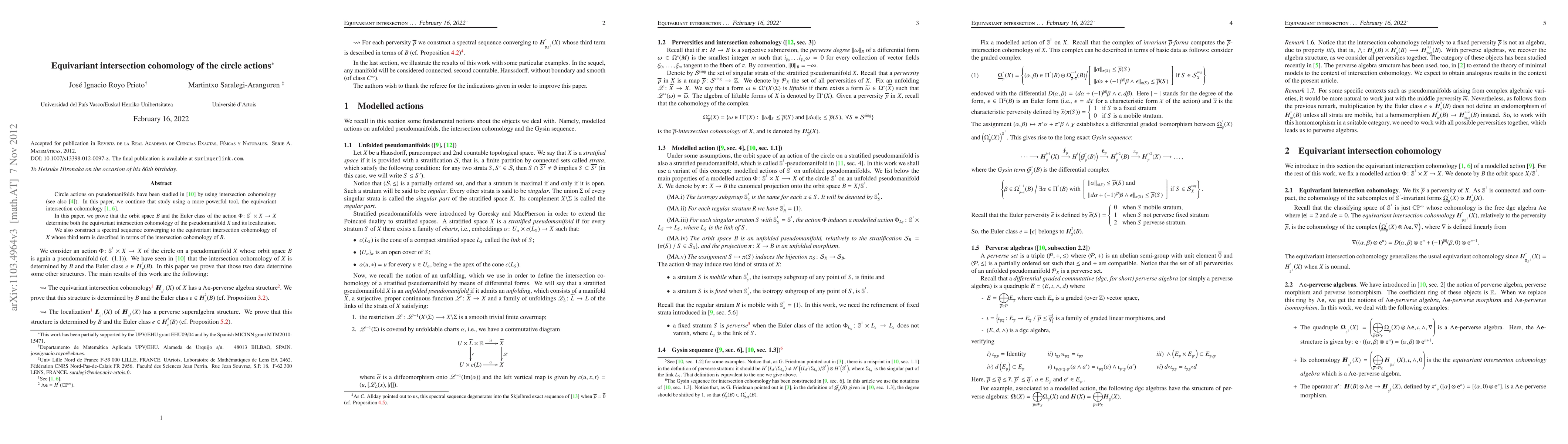 This paper establishes that the orbit space B and the Euler class of a circle S^1 action on X determine the equivariant intersection cohomology and its localization. It also introduces a spectral sequence converging to the equivariant intersection cohomology, with its third term linked to the intersection cohomology of B.