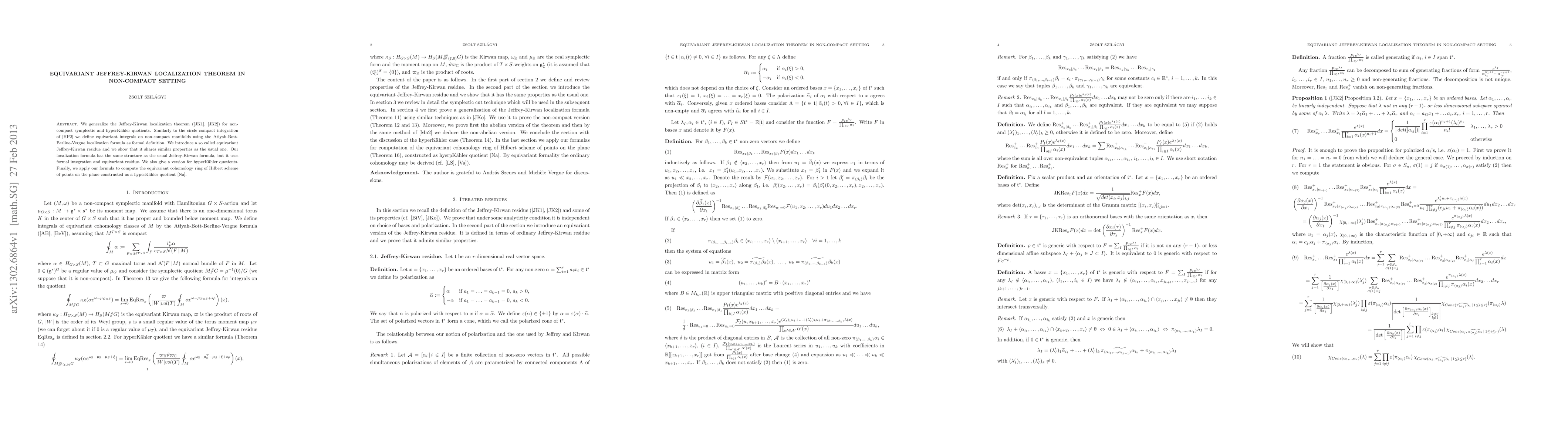 This paper generalizes the Jeffrey-Kirwan localization theorem for non-compact symplectic and hyperKähler quotients using an equivariant residue approach and formal integration, extending methods from compact settings. It applies the developed formula to compute the equivariant cohomology ring of the Hilbert scheme of points on the plane.