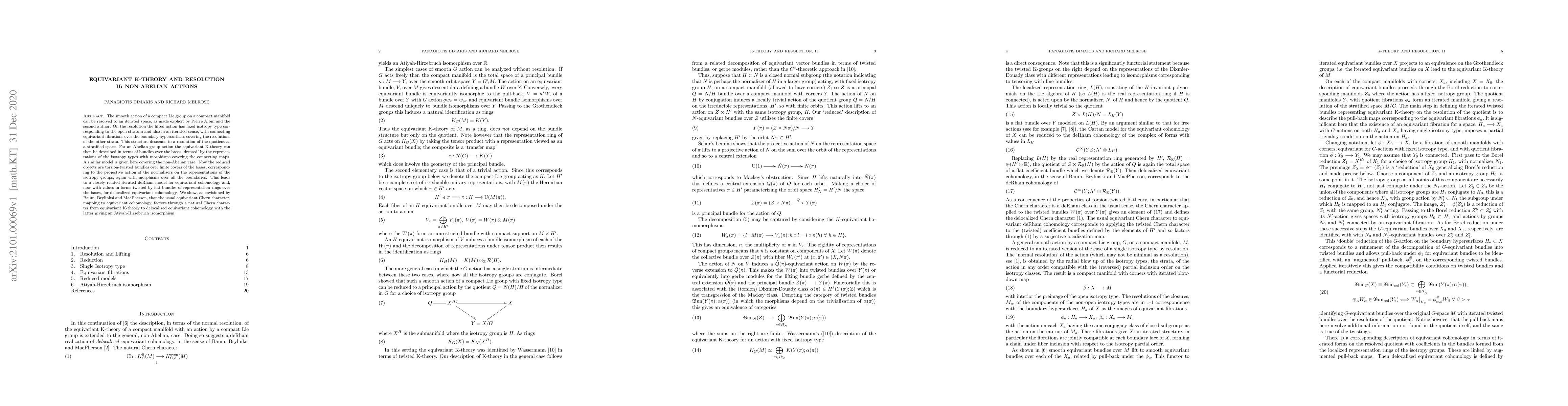 This paper explores the resolution of smooth actions of non-Abelian compact Lie groups on manifolds, extending previous work on Abelian actions. It constructs a model for equivariant K-theory using torsion-twisted bundles over finite covers, leading to an iterated deRham model for equivariant cohomology and demonstrating a factorization of the equivariant Chern character through delocalized equivariant cohomology.