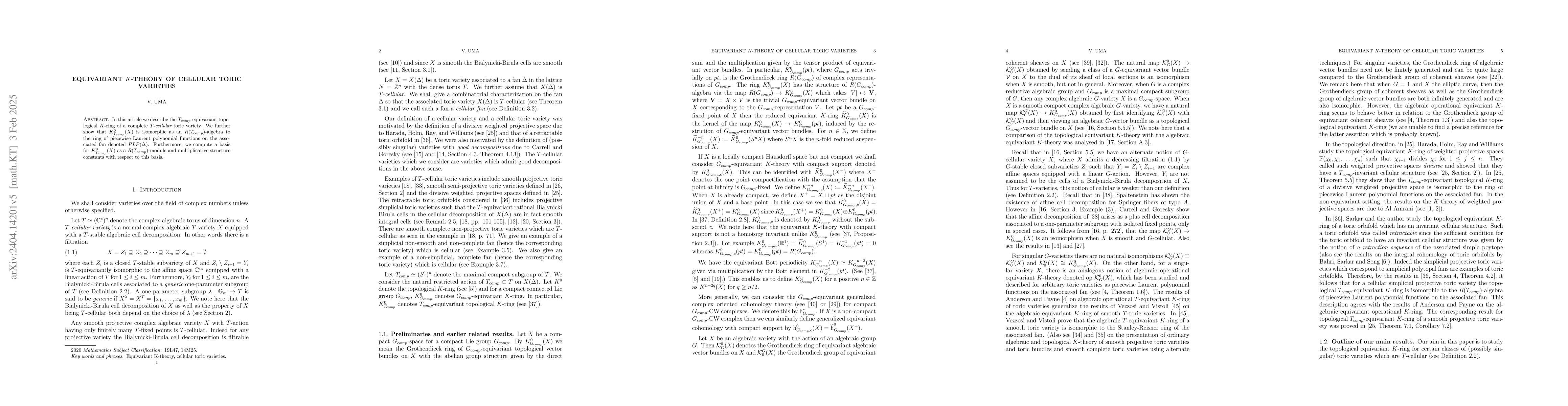 This paper explores the $T_{comp}$-equivariant topological $K$-ring of cellular toric varieties, proving an isomorphism between $K_{T_{comp}}^0(X)$ and the ring of piecewise Laurent polynomial functions on the associated fan, $PLP(\Delta)$, and computes its basis and multiplicative structure constants.