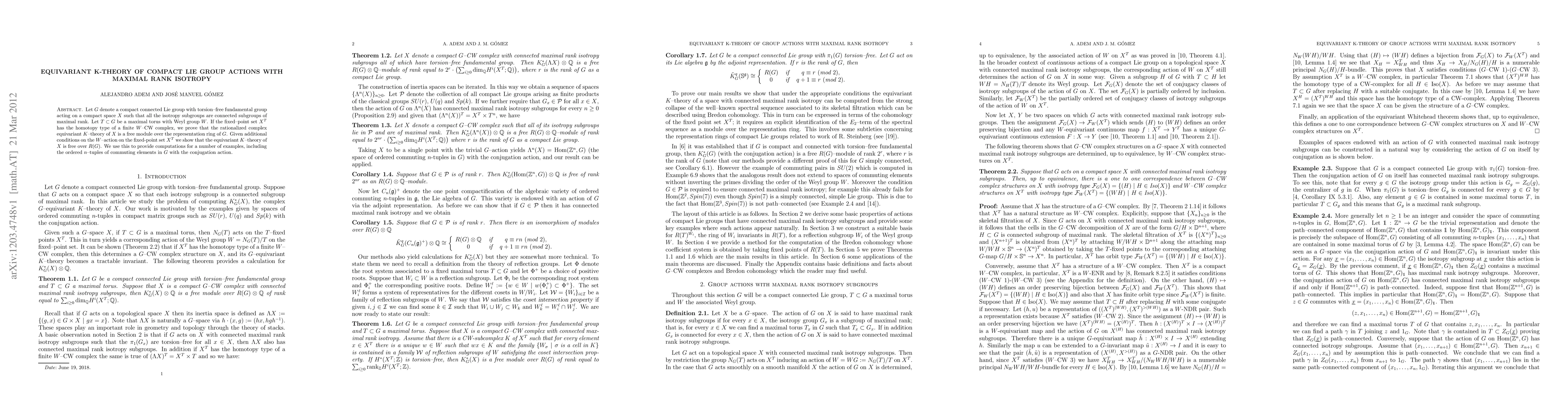 Let G denote a compact connected Lie group with torsion-free fundamental group acting on a compact space X such that all the isotropy subgroups are connected subgroups of maximal rank. Let $T\subset G$ be a maximal torus with Weyl group W. If the fixed-point set $X^T$ has the homotopy type of a finite W-CW complex, we prove that the rationalized complex equivariant K-theory of X is a free module over the representation ring of G. Given additional conditions on the W-action on the fixed-point set $X^T$ we show that the equivariant K-theory of X is free over R(G). We use this to provide computations for a number of examples, including the ordered n-tuples of commuting elements in G with the conjugation action.