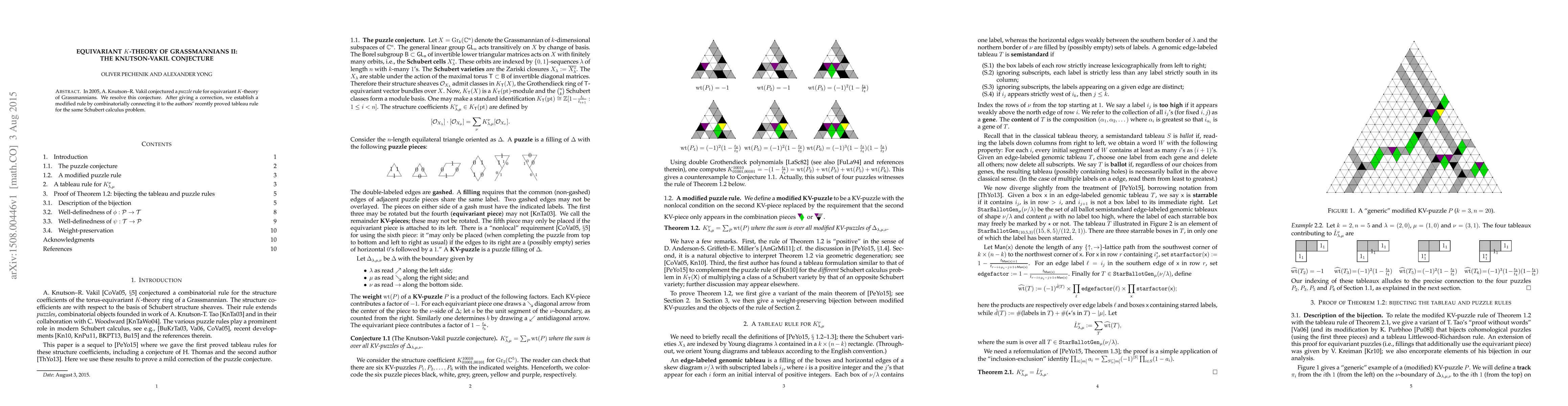 This paper resolves the Knutson-Vakil conjecture, a 2005 puzzle rule for equivariant K-theory of Grassmannians, by establishing a modified rule that links combinatorially to the authors' previously proven tableau rule for Schubert calculus.