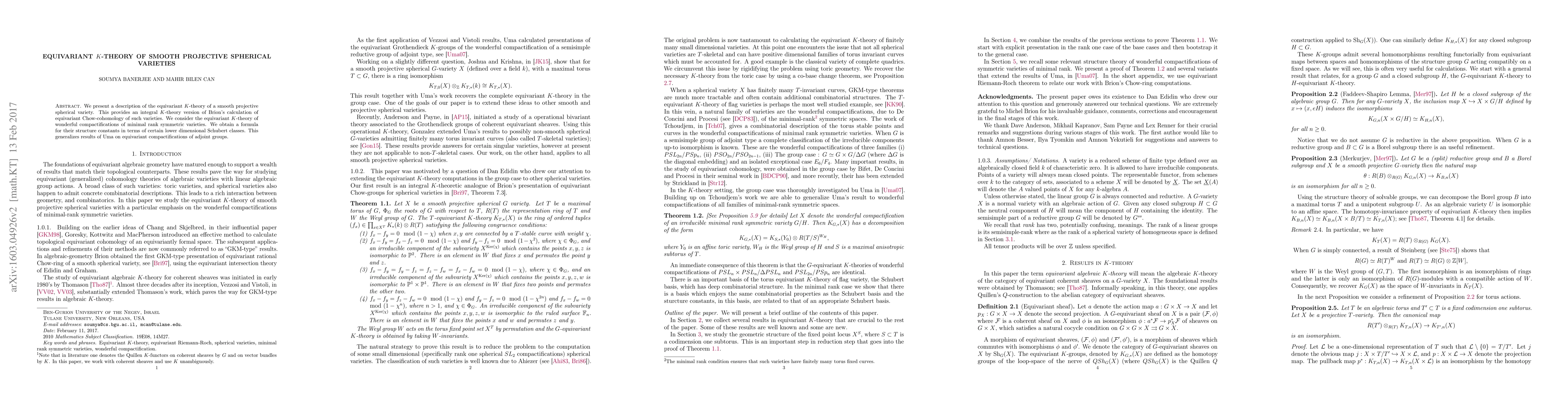 We present a description of the equivariant $K$-theory of a smooth projective spherical variety. This provides an integral $K$-theory version of Brion's calculation of equivariant Chow-cohomology of such varieties. We consider the equivariant $K$-theory of wonderful compactifications of minimal rank symmetric varieties. We obtain a formula for their structure constants in terms of certain lower dimensional Schubert classes. This generalizes results of Uma on equivariant compactifications of adjoint groups.