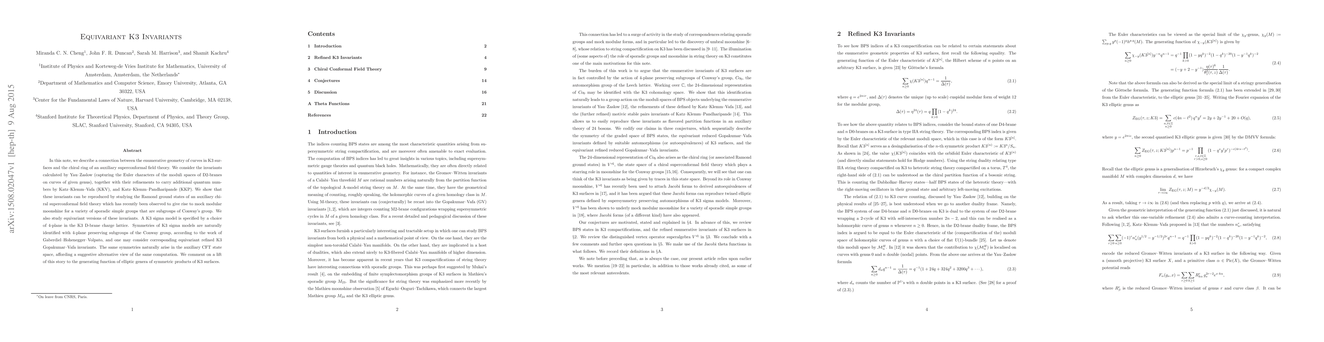This paper establishes a link between enumerative geometry on K3 surfaces and the chiral ring of a superconformal field theory, showing that invariants derived from K3 moduli spaces match those from a related chiral superconformal field theory. It also explores equivariant versions of these invariants, relating symmetries of K3 sigma models to subgroups of the Conway group.