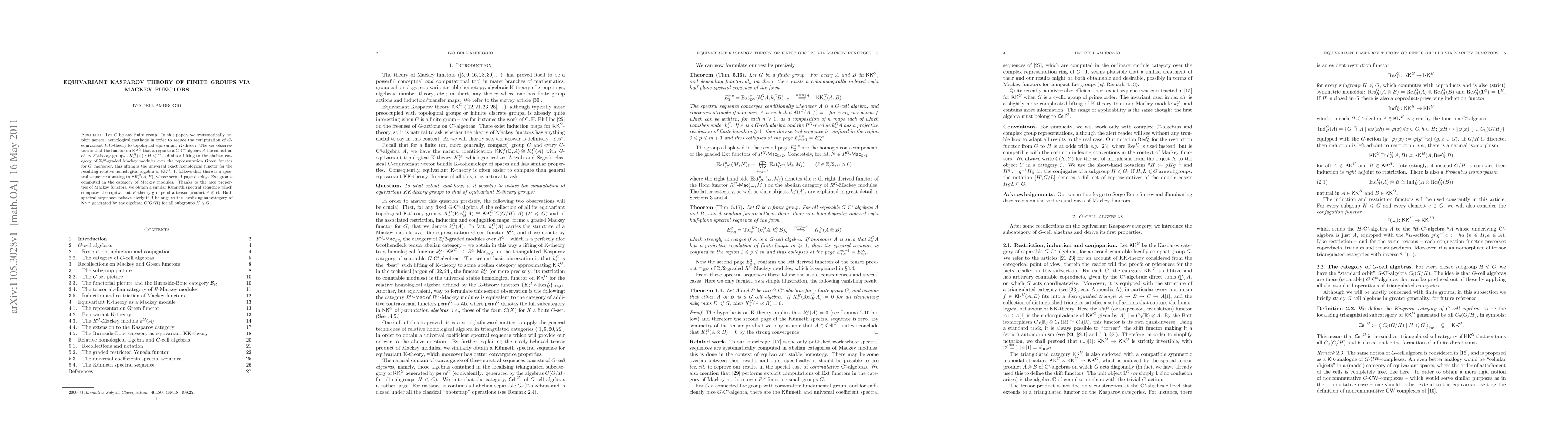 Let G be a finite group. We systematically exploit general homological methods in order to reduce the computation of G-equivariant KK-theory to topological equivariant K-theory. The key observation is that the functor assigning to a separable G-C*-algebra the collection of all its equivariant K-theory groups lifts naturally to a homological functor taking values in the abelian tensor category of Mackey modules over the classical representation Green functor for G. This fact yields a new universal coefficient and a new Kuenneth spectral sequence for the G-equivariant Kasparov category, whose convergence behavior is nice for all G-C*-algebras in a certain bootstrap class.
