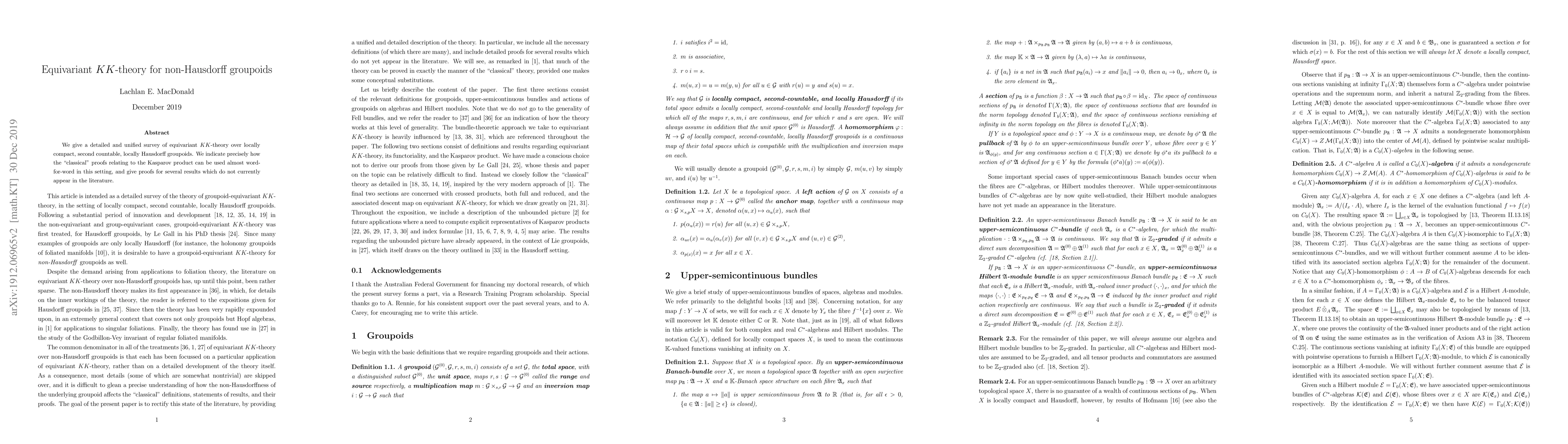 We give a detailed and unified survey of equivariant $KK$-theory over locally compact, second countable, locally Hausdorff groupoids. We indicate precisely how the "classical" proofs relating to the Kasparov product can be used almost word-for-word in this setting, and give proofs for several results which do not currently appear in the literature.