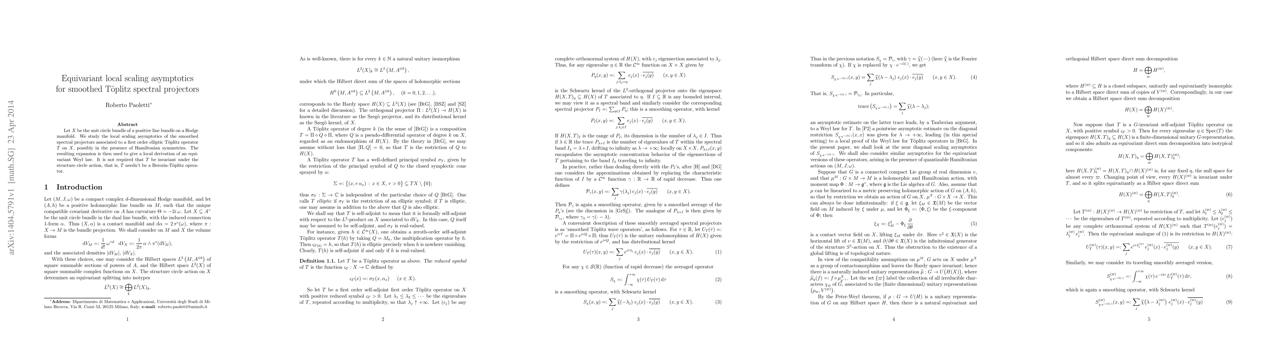 Let $X$ be the unit circle bundle of a positive line bundle on a Hodge manifold. We study the local scaling asymptotics of the smoothed spectral projectors associated to a first order elliptic T\"{o}plitz operator $T$ on $X$, possibly in the presence of Hamiltonian symmetries. The resulting expansion is then used to give a local derivation of an equivariant Weyl law. It is not required that $T$ be invariant under the structure circle action, that is, $T$ needn't be a Berezin-T\"{o}plitz operator.