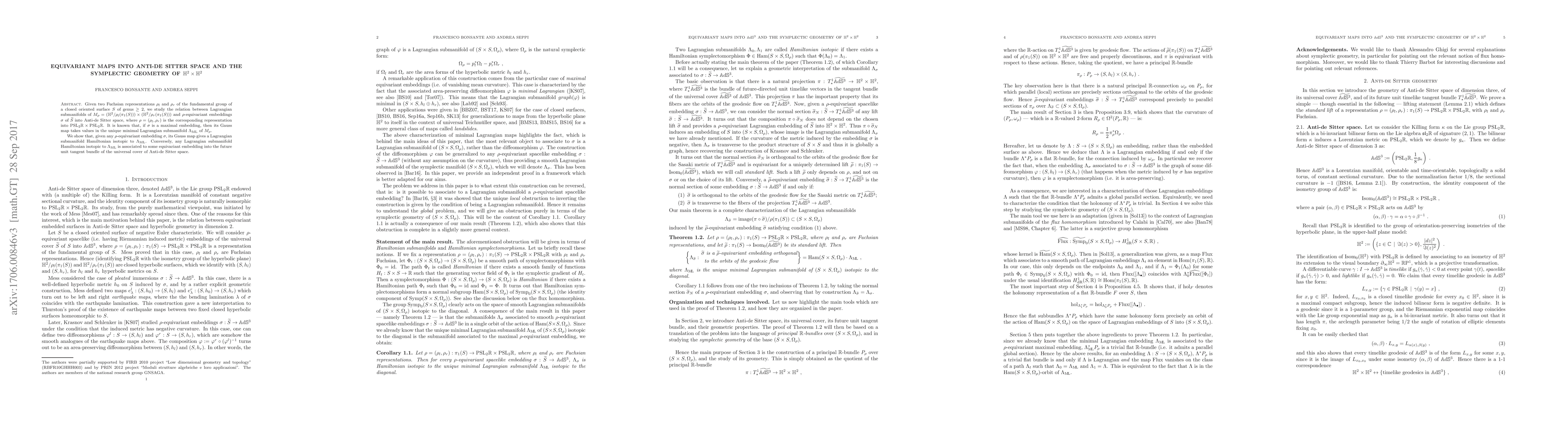 This paper explores the relationship between Lagrangian submanifolds in the product space $\mathbb{H}^2\times \mathbb{H}^2$ and equivariant embeddings of surfaces into Anti-de Sitter space. It shows that the Gauss map of any equivariant embedding yields a Lagrangian submanifold Hamiltonian isotopic to a unique minimal Lagrangian submanifold.