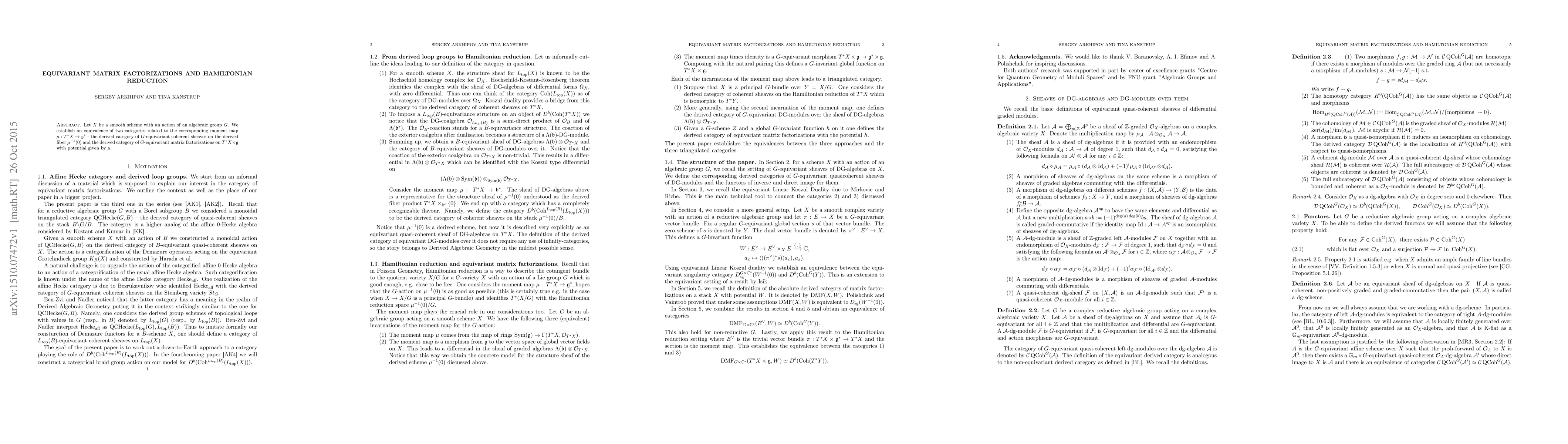 Researchers establish an equivalence between two categories related to moment maps on a smooth scheme with an algebraic group action, linking G-equivariant coherent sheaves and matrix factorizations.