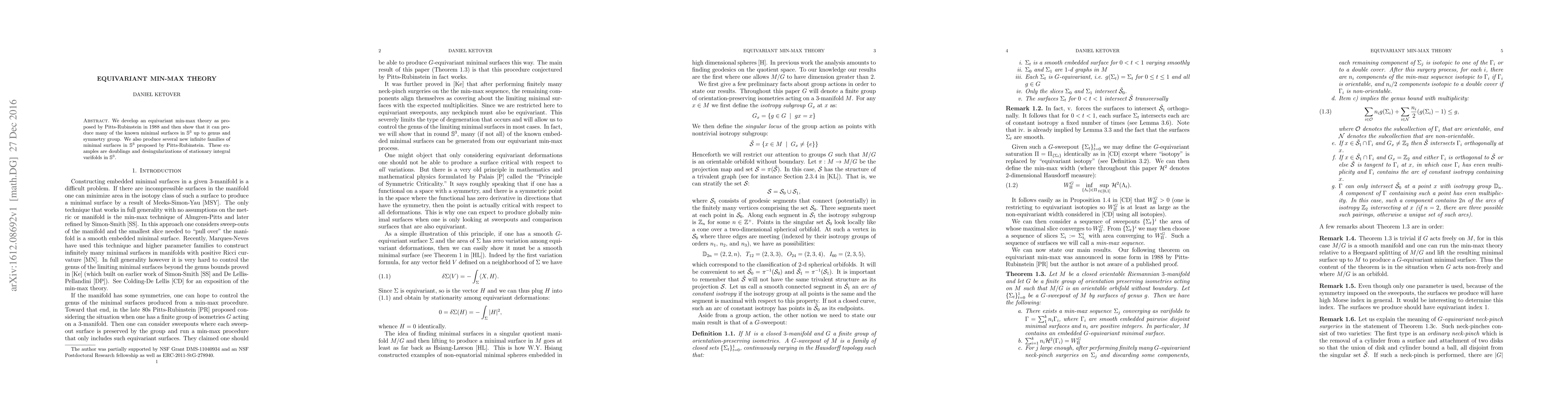 This paper develops an equivariant min-max theory to generate minimal surfaces in $\mathbb{S}^3$, producing known minimal surfaces and several new infinite families, including doublings and desingularizations of stationary integral varifolds.