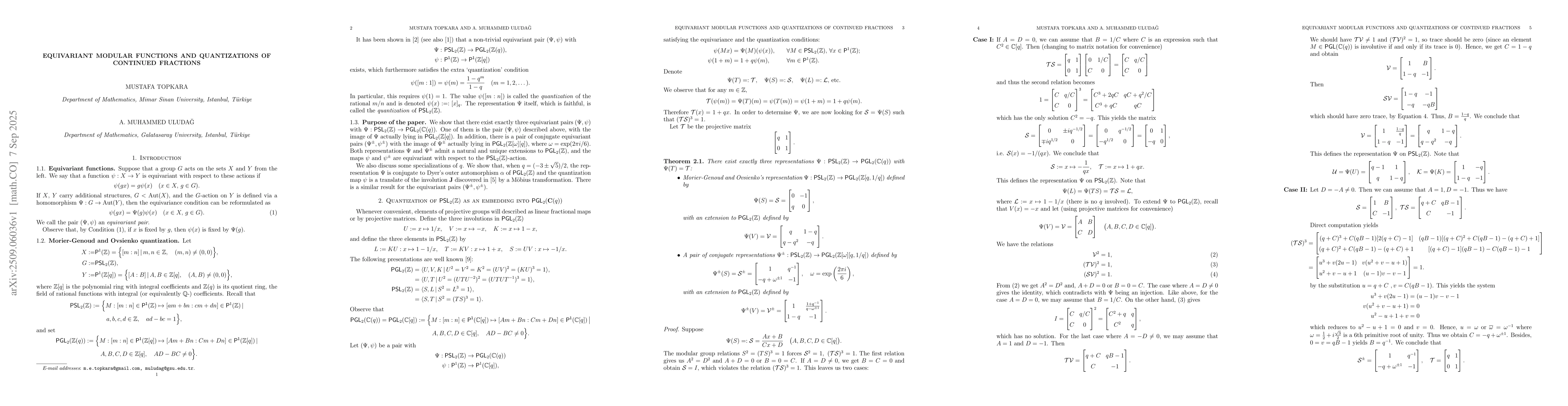 We show that, in addition to the quantizations of the rational numbers discovered by Morier-Genoud and Ovsienko, there exist a pair of conjugate representations of the modular group and the corresponding equivariant maps with respect to these representations. We discuss some specializations of these quantizations and discuss its connection to Dyer's outer automorphism and the associated involution Jimm of the real line.