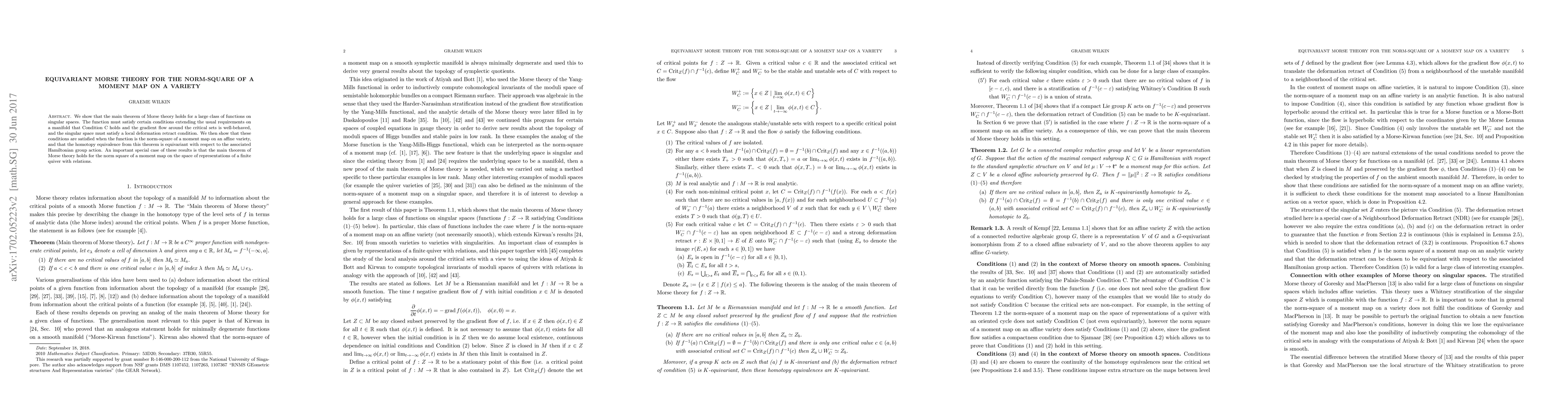 This paper demonstrates that Morse theory applies to functions on singular spaces that meet specific conditions, extending typical manifold requirements. It shows these conditions hold for the norm-square of a moment map on an affine variety, resulting in an equivariant homotopy equivalence under a Hamiltonian group action, including for representation spaces of finite quivers.