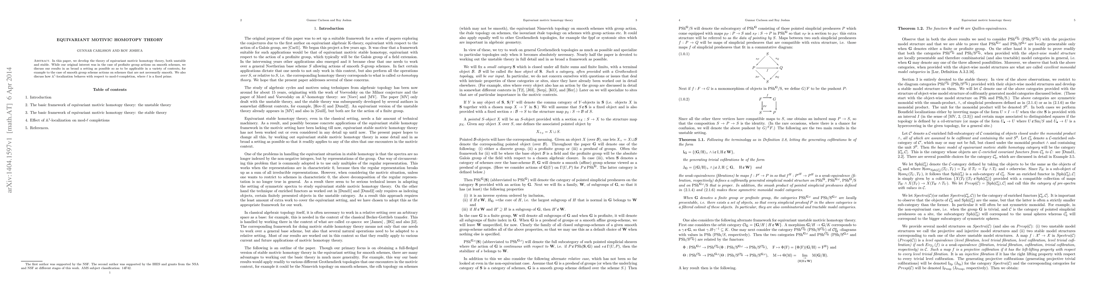 Summary: This paper develops equivariant motivic homotopy theory, both unstable and stable, with applications to profinite group actions on smooth schemes and beyond. It examines the behavior of ${\mathbb A}^1$-localization in relation to mod-$\ell$-completion for a fixed prime $\ell$.