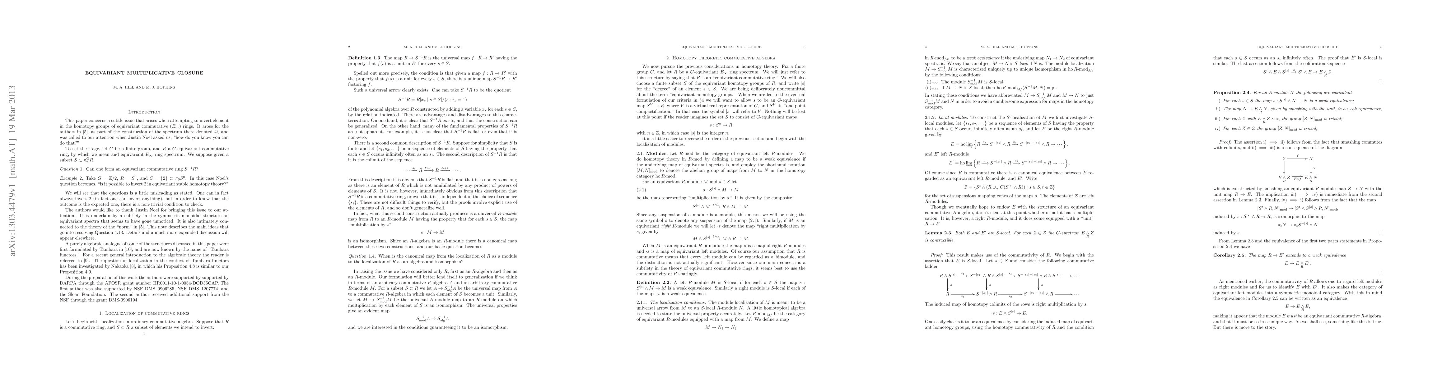 This paper describes an issue that arises when inverting elements of the homotopy groups of an equivariant commutative ring. Equivariant commutative rings possess an enhanced multiplicative structure arising from the presence of "indexed products" (products indexed by a set with a non-trivial action of the group). The formation of the "multiplicative closure" of a set must be altered in order to accomodate this structure, and the result of localizing an equivariant commutative ring can have an unexpected homotopy type.