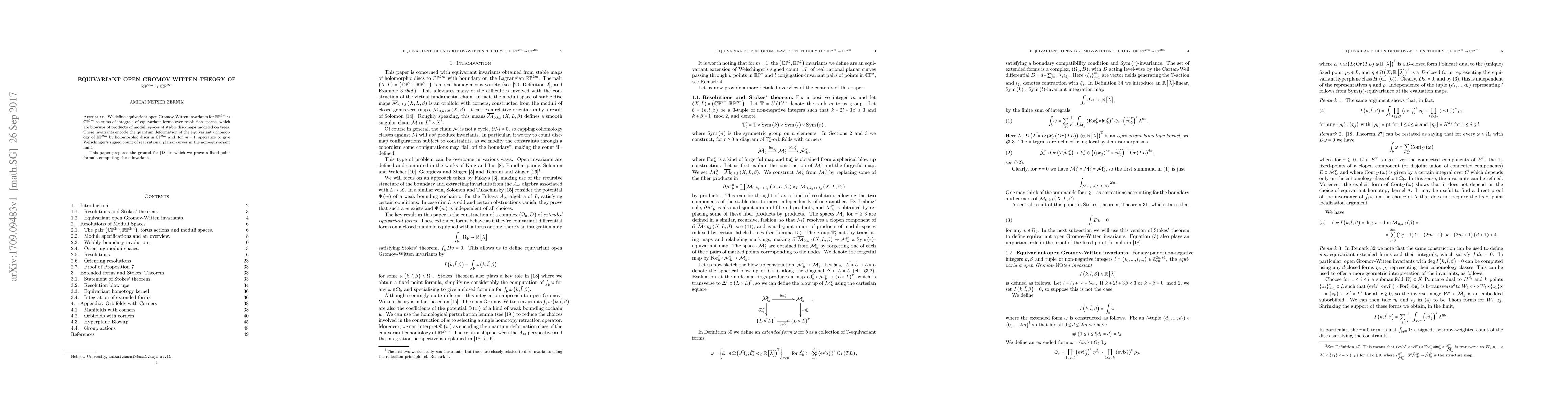 This paper introduces equivariant open Gromov-Witten invariants for the real projective space embedded in complex projective space, defined via integrals over blowup spaces of moduli of stable disc-maps. These invariants represent the quantum deformation of the equivariant cohomology of real projective space by holomorphic discs in complex projective space.