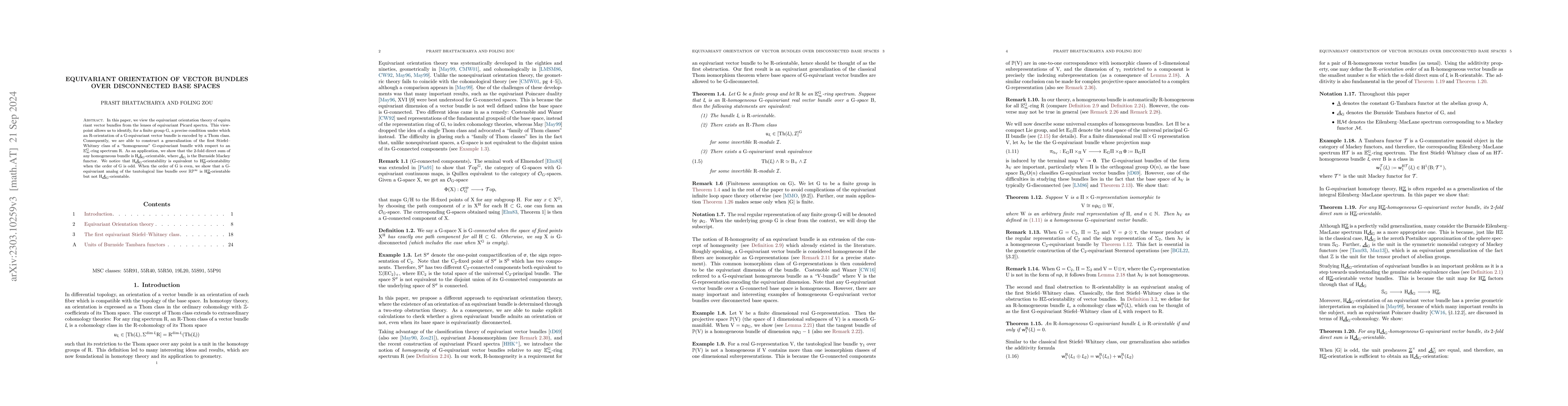 This paper explores equivariant orientation theory for vector bundles over disconnected bases using equivariant Picard spectra, establishing conditions under which an R-orientation is encoded by a Thom class. It constructs a generalization of the first Stiefel-Whitney class for homogeneous G-equivariant bundles and demonstrates the H𝒜𝒢-orientability of their 2-fold direct sums.