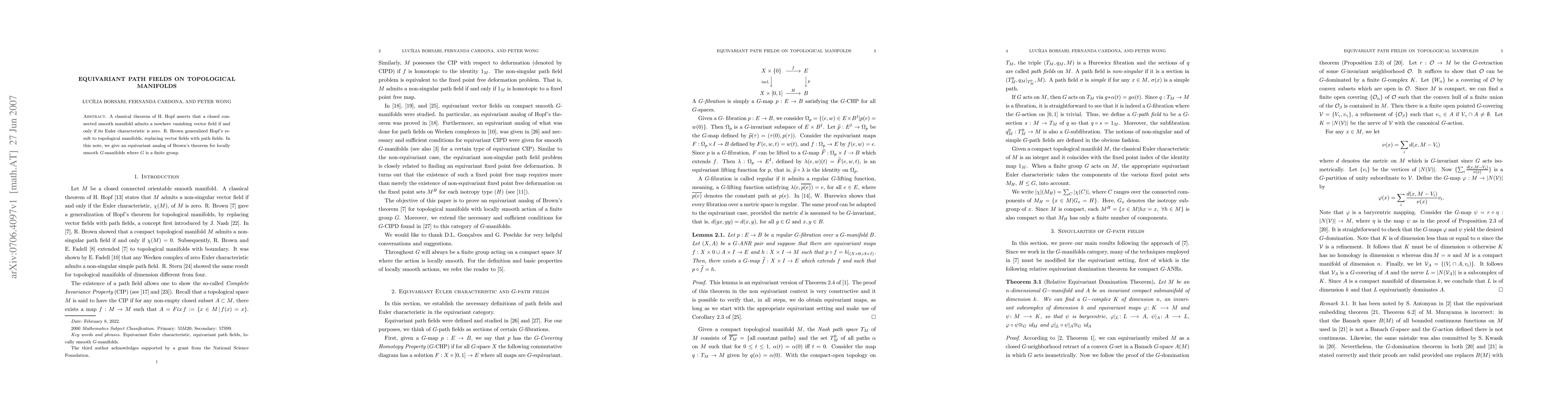This paper extends R. Brown's generalization of Hopf's theorem to topological manifolds by providing an equivariant version for locally smooth $G$-manifolds, where $G$ is a finite group, ensuring the existence of nowhere vanishing path fields under certain conditions.