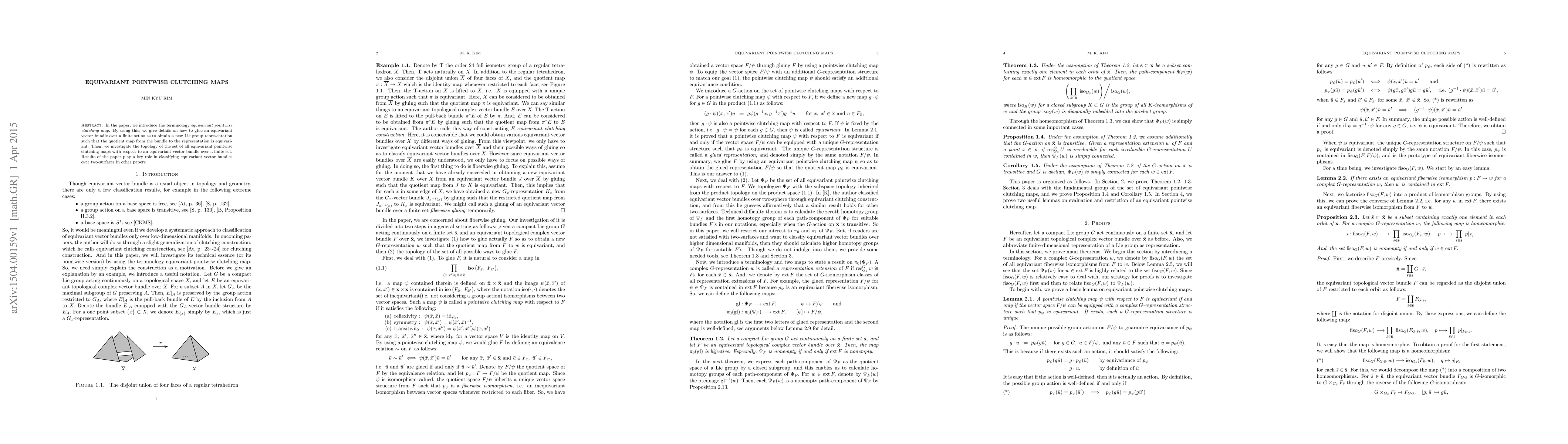 This paper introduces the concept of equivariant pointwise clutching maps to glue equivariant vector bundles over finite sets, ensuring the resulting quotient map is equivariant. It studies the topology of the set of these maps, which aids in classifying equivariant vector bundles over two-surfaces.
