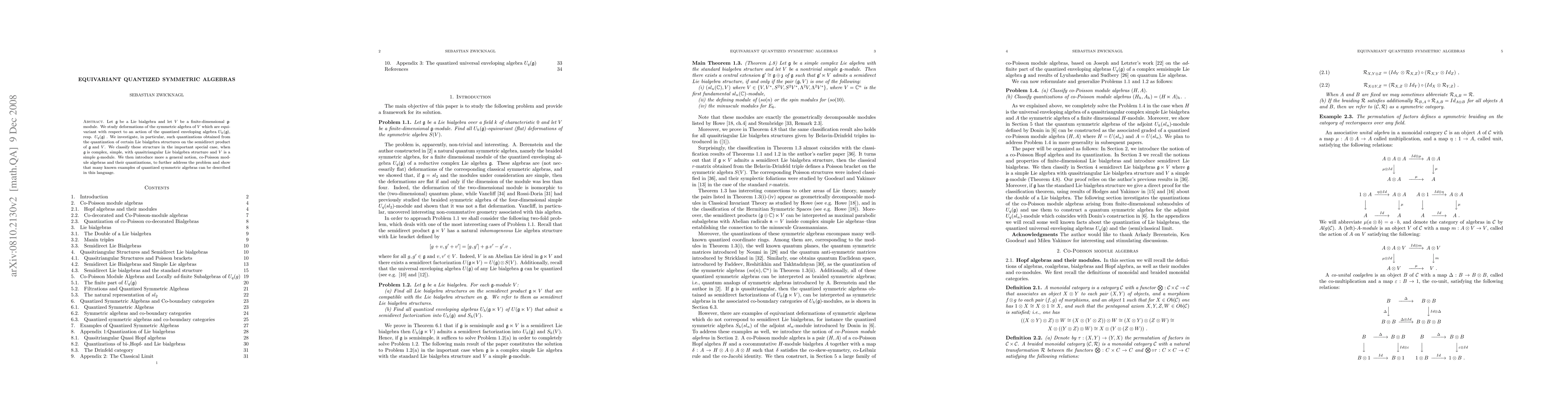 Let g be a Lie bialgebra and let V be a finite-dimensional g-module. We study deformations of the symmetric algebra of V which are equivariant with respect to an action of the quantized enveloping algebra of g. In particular we investigate such quantizations obtained from the quantization of certain Lie bialgebra structures on the semidirect product of g and V. We classify these structure in the important special case, when g is complex, simple, with quasitriangular Lie bialgebra structure and V is a simple g-module. We then introduce more a general notion, co-Poisson module algebras and their quantizations, to further address the problem and show that many known examples of quantized symmetric algebras can be described in this language.